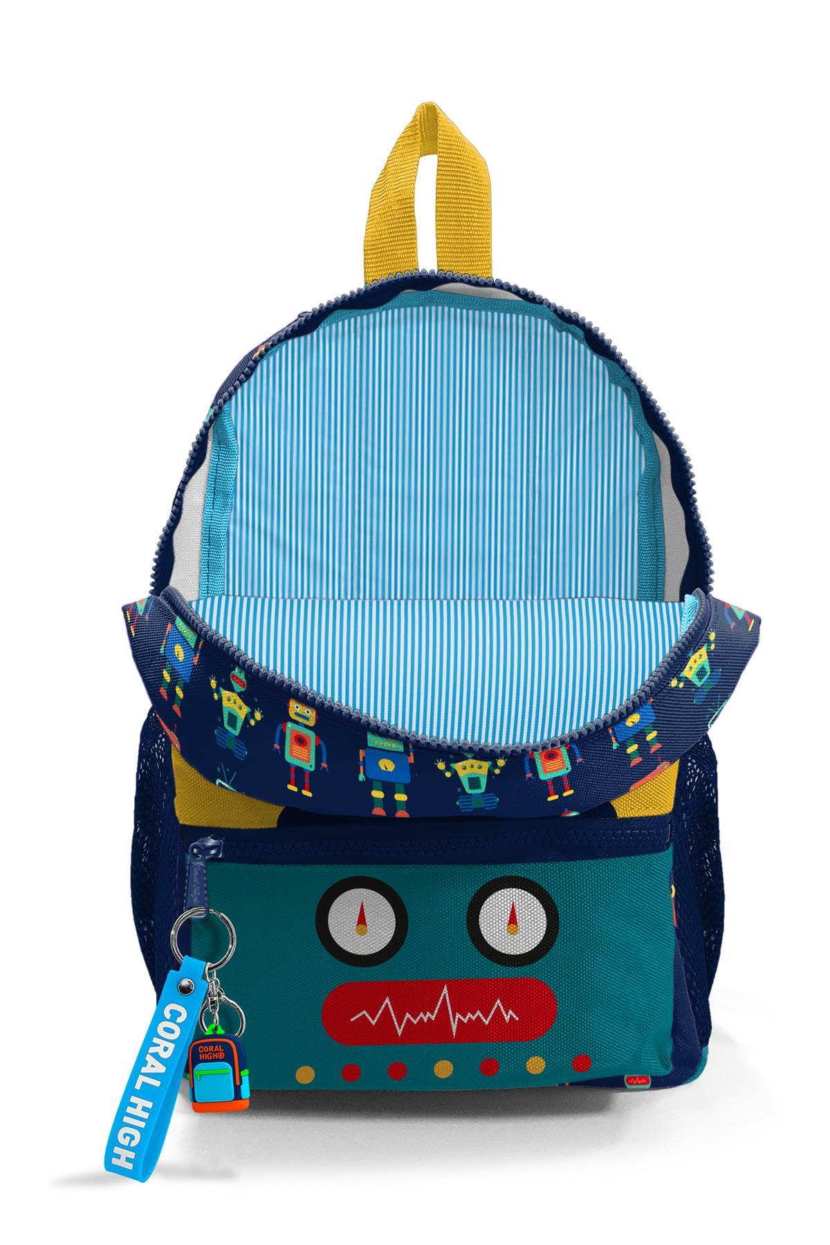 Minik Yuva Sırt Çantası Lacivert Çivit Robot Desenli İki Bölmeli 23348