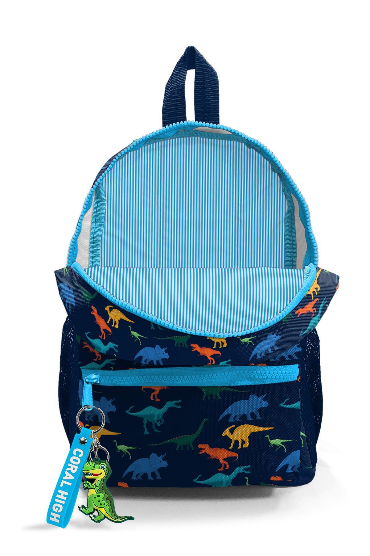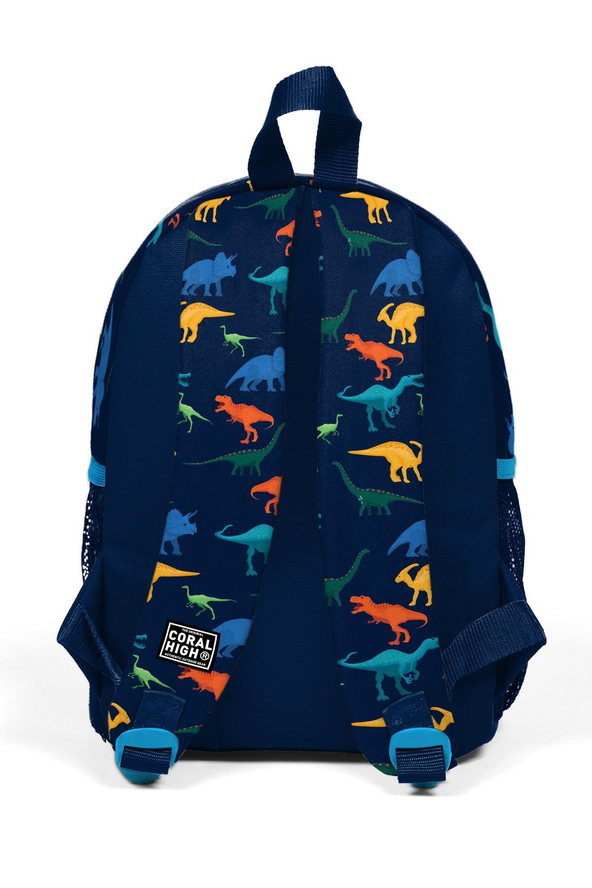 Minik Yuva Sırt Çantası Lacivert Mavi Dinozor Desenli İki Bölmeli 23353