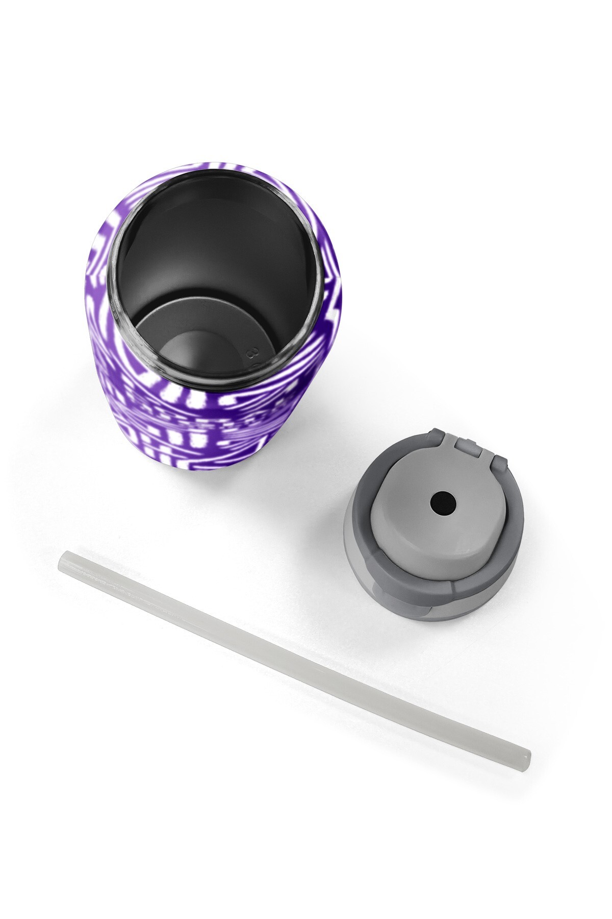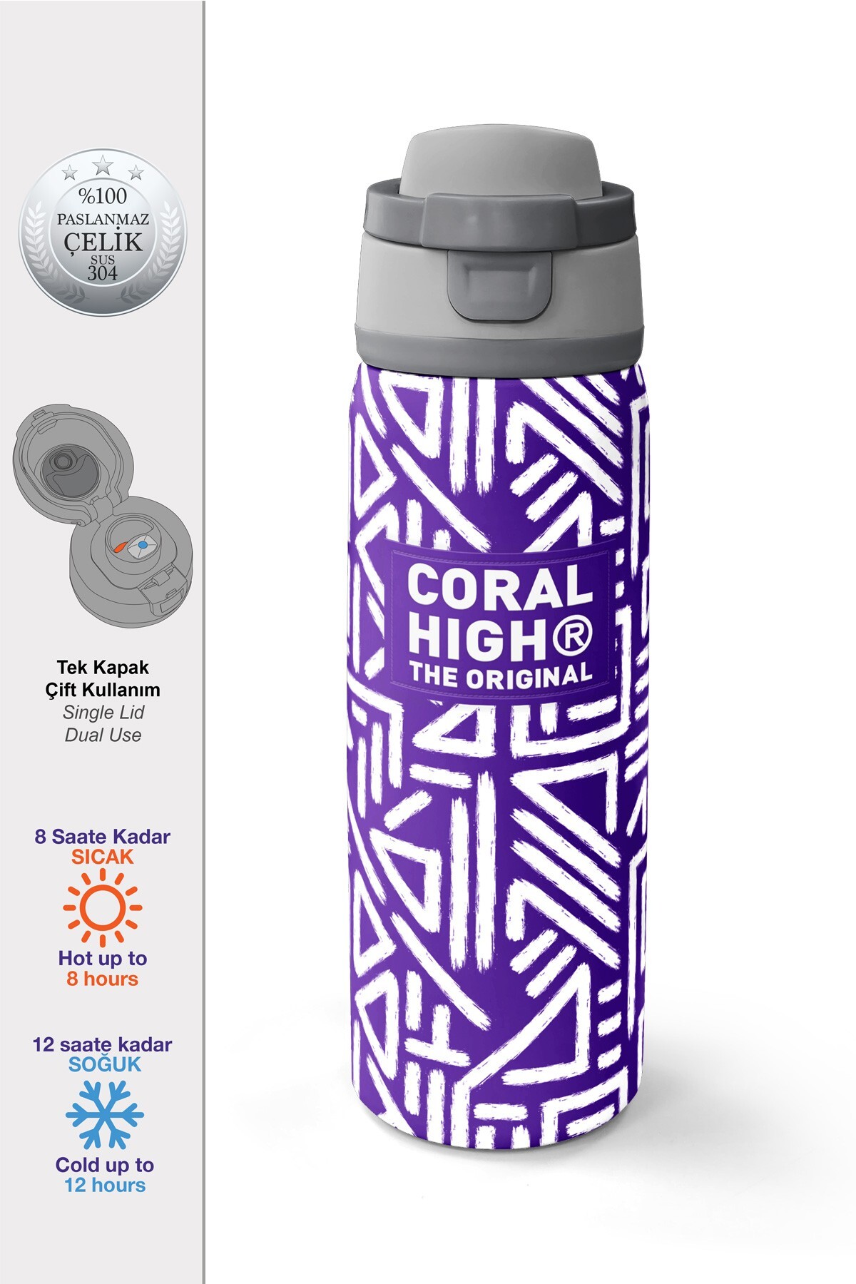 Coral High Mor Beyaz Geometrik Desenli Pipetli ve Direkt İçim Çelik Termos 800 ml 38543