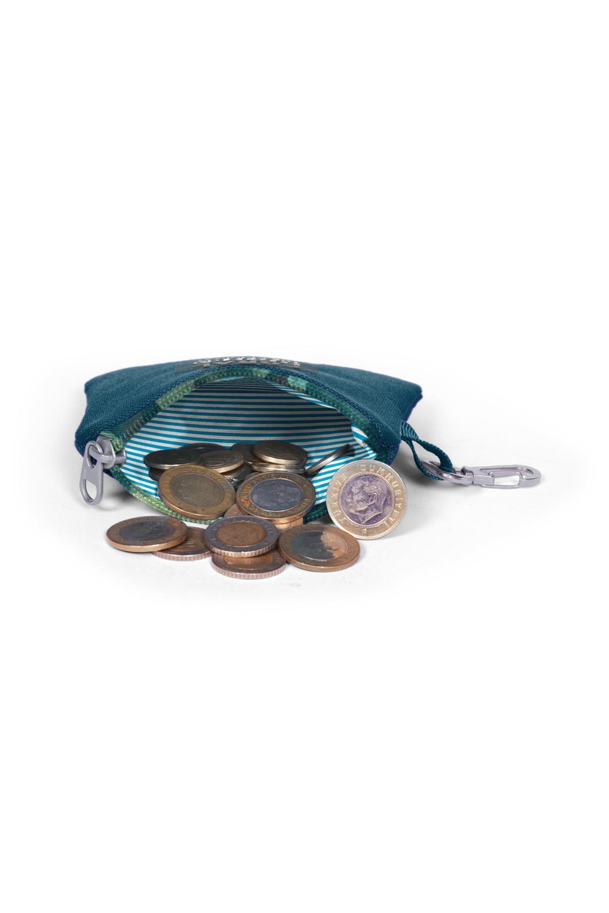 Tek bölmeli, fermuarlı bozuk para cüzdanı.