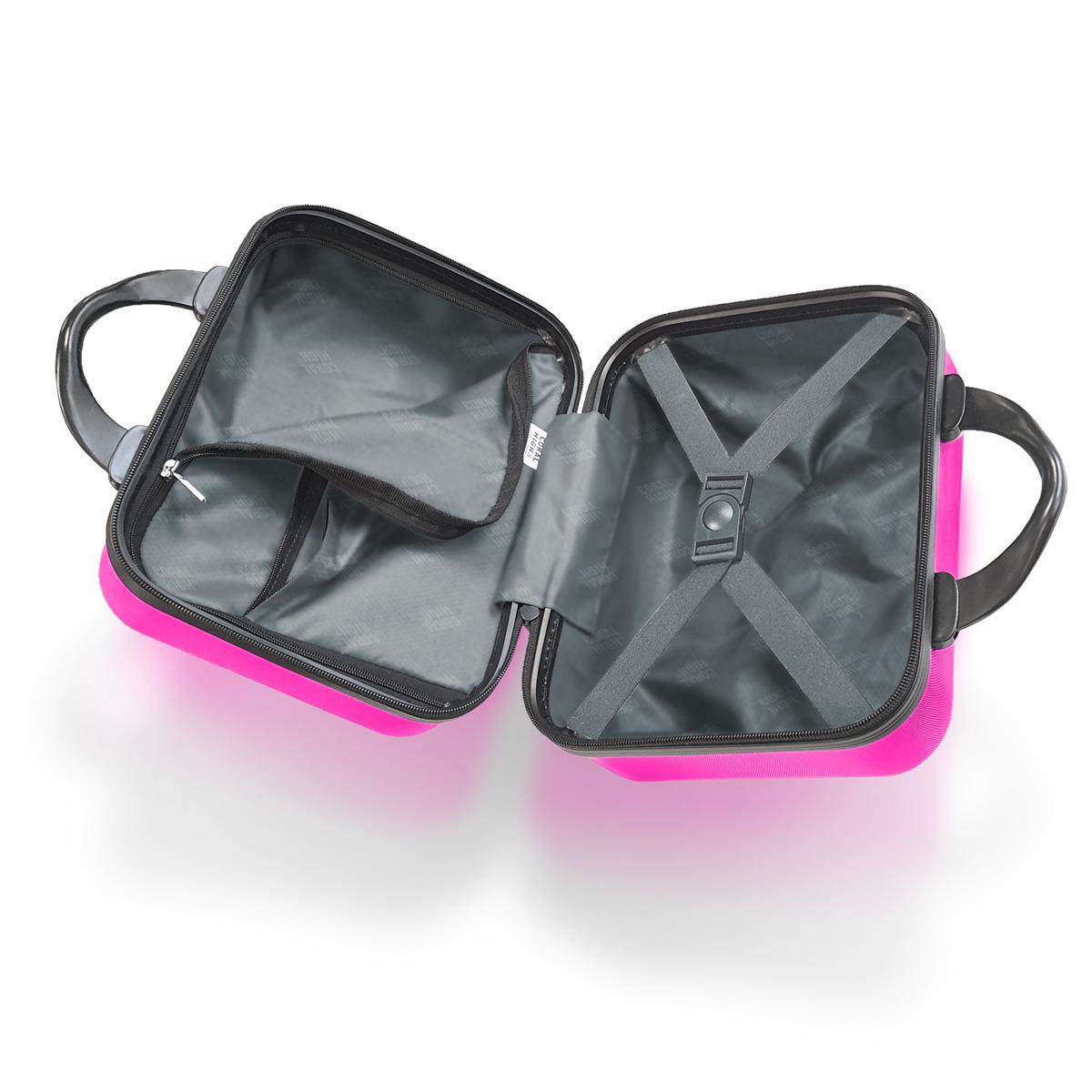 Valiz ve makyaj çantaları plastik taşıma kulpuna sahiptir.