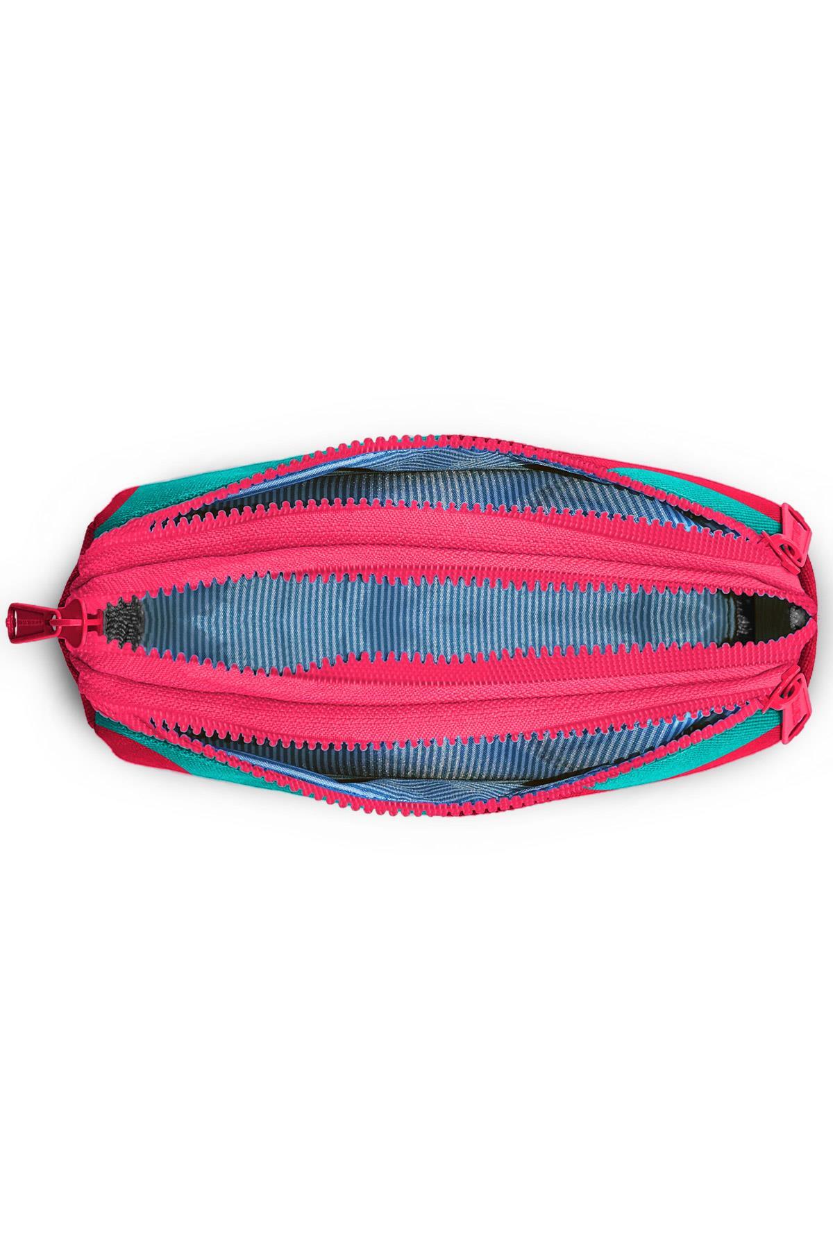 Coral High Neon Mercan Turkuaz Desenli Üç Bölmeli Kalem Çantası 11185