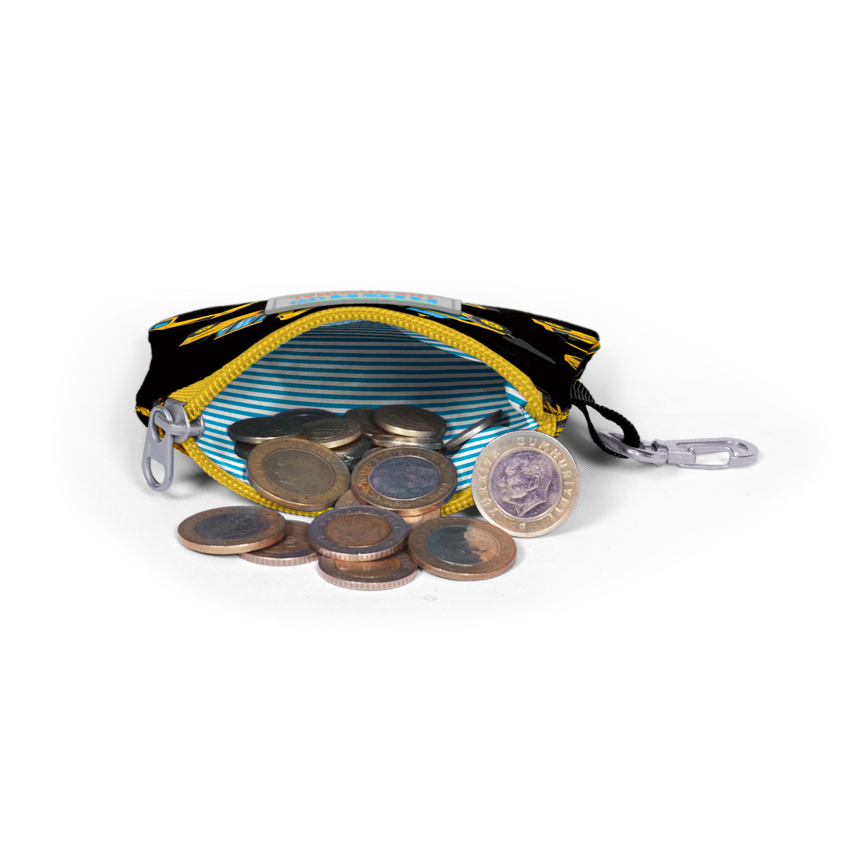 Tek bölmeli, fermuarlı bozuk para cüzdanı.