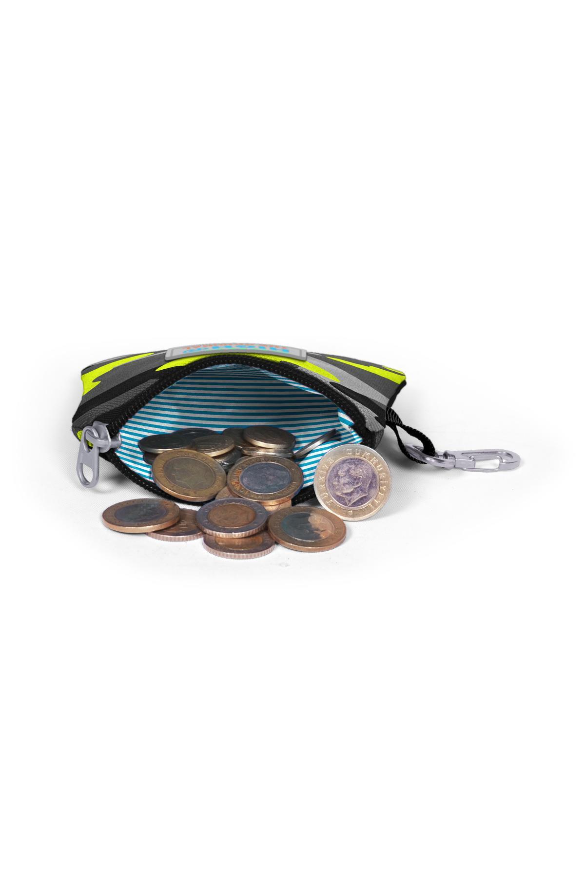 Tek bölmeli, fermuarlı bozuk para cüzdanı.