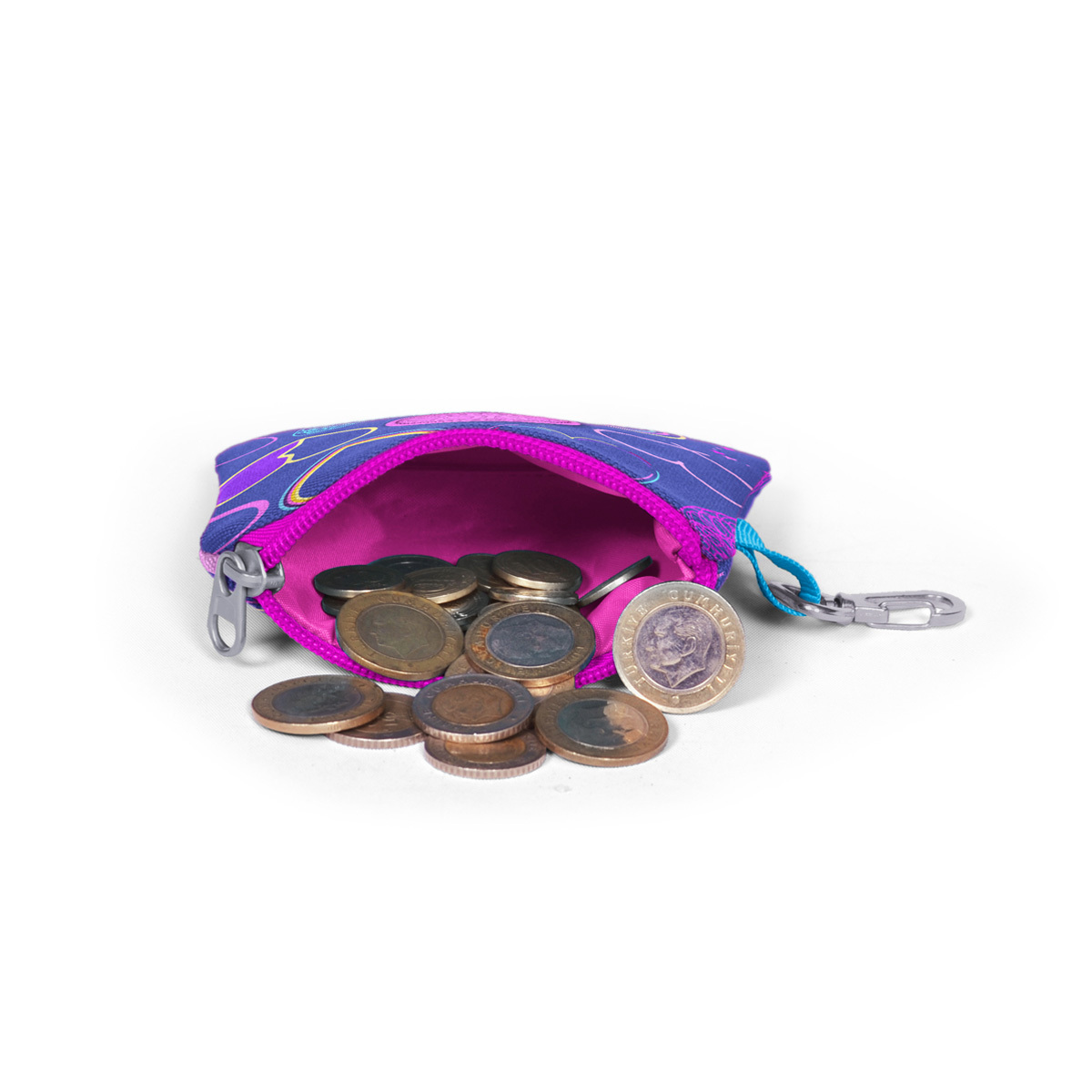Tek bölmeli, fermuarlı bozuk para cüzdanı.