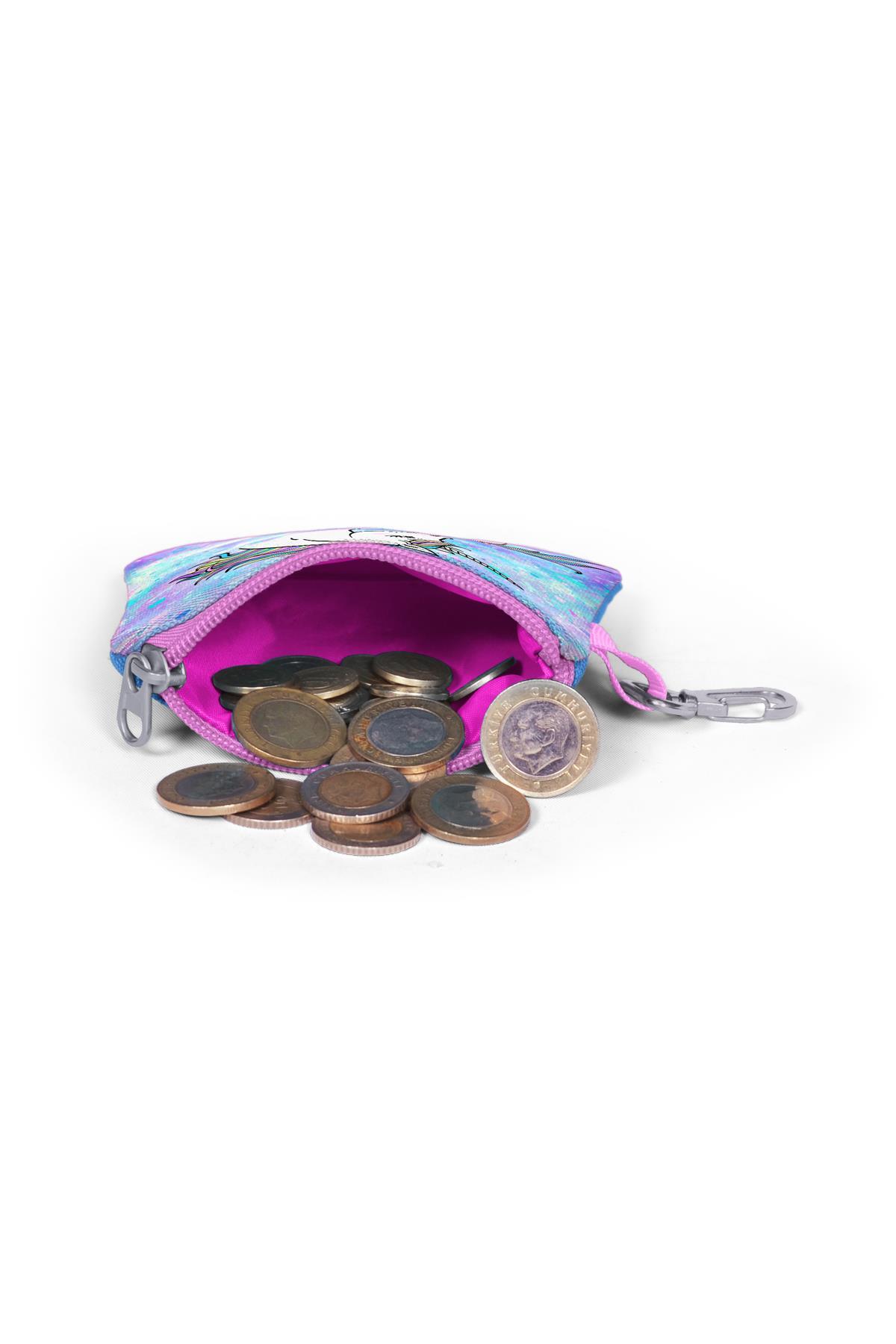 Coral High Derin Mavi Açık Pembe Unicornl Desenli Bozuk Para Çantası 21775