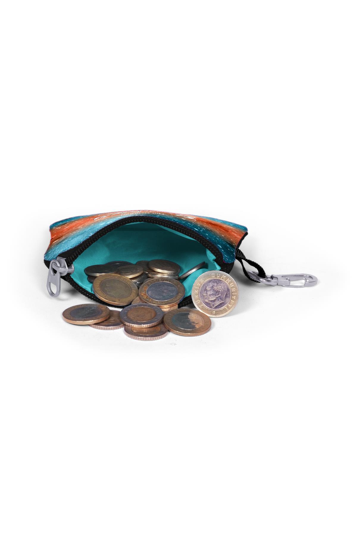 Tek bölmeli, fermuarlı bozuk para cüzdanı.