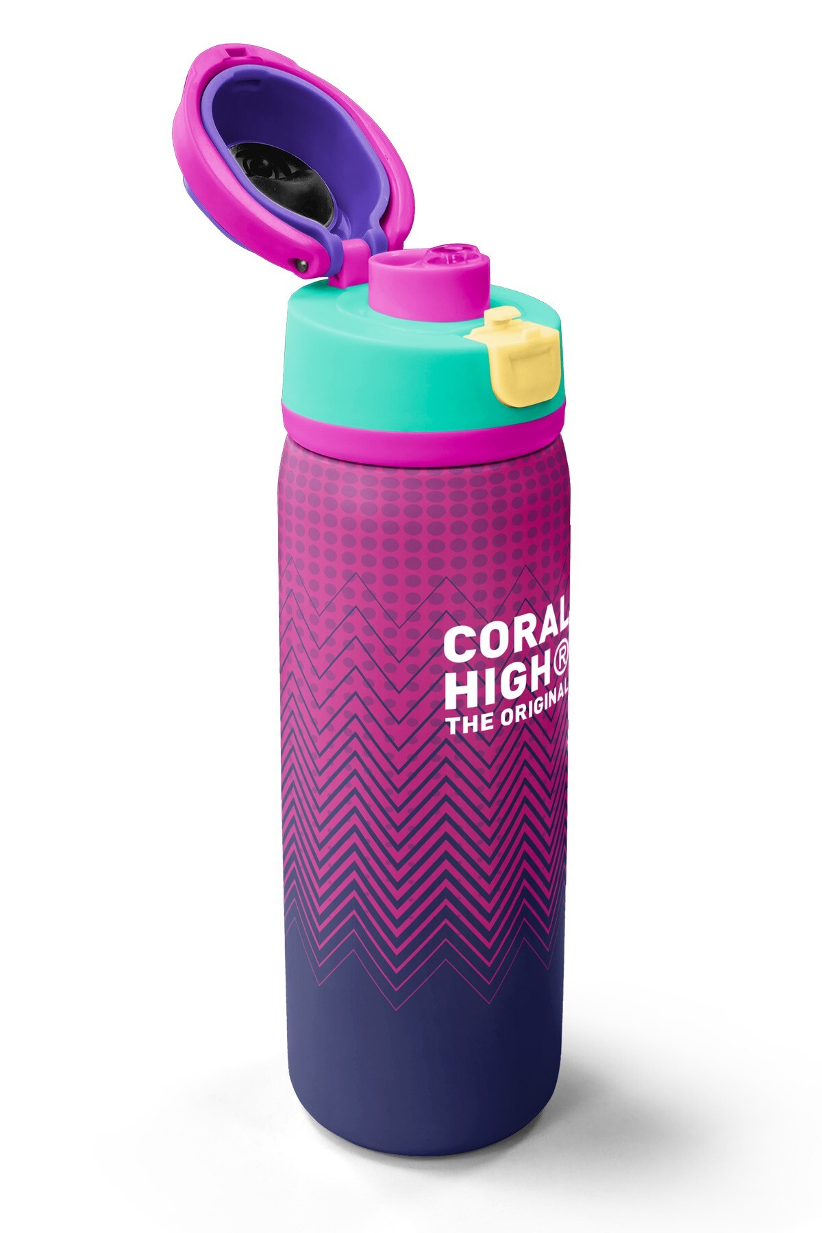 Coral High Pembe Lacivert Desenli Pipetli ve Direkt İçim Çelik Termos 800 ml 38589