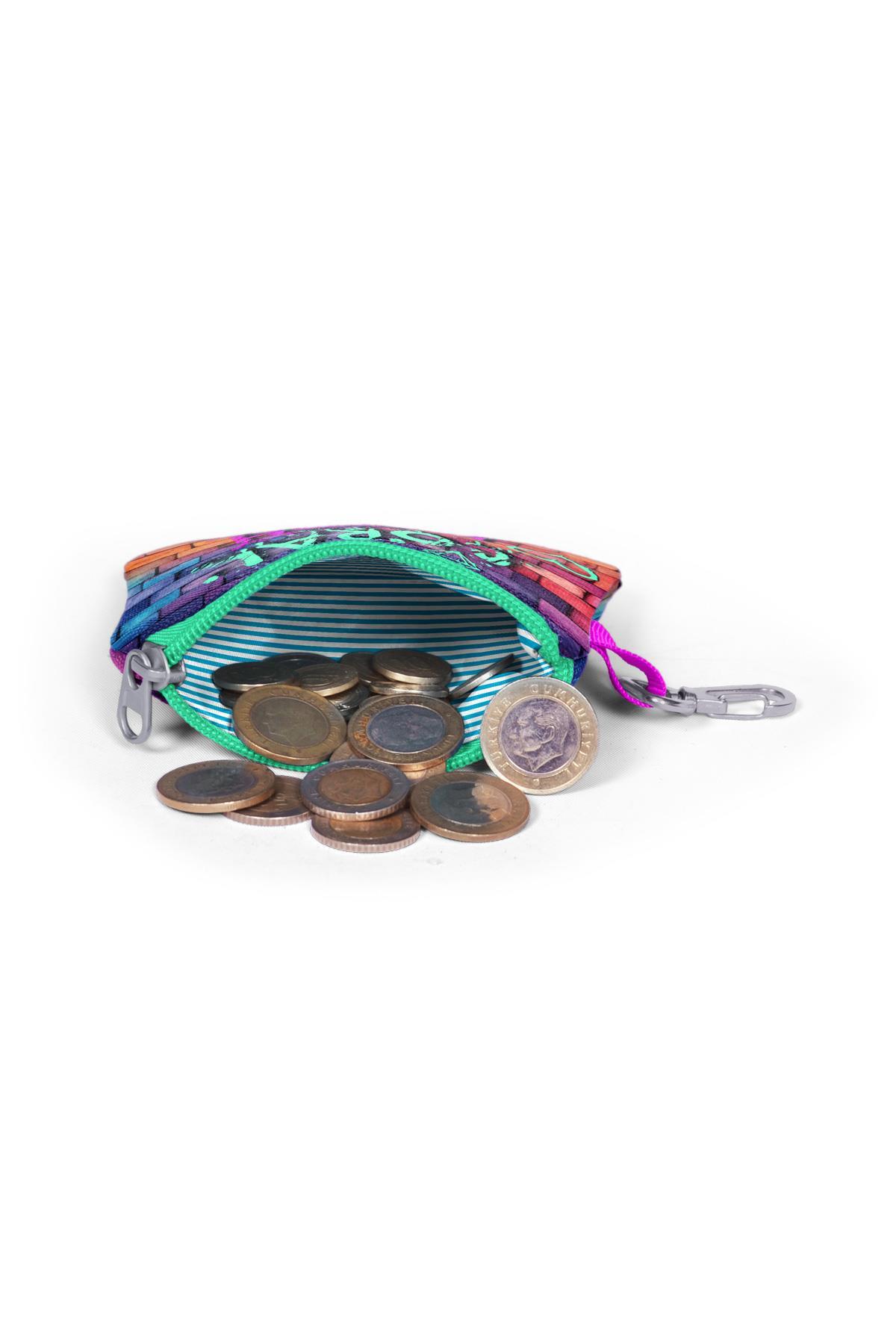 Tek bölmeli, fermuarlı bozuk para cüzdanı.