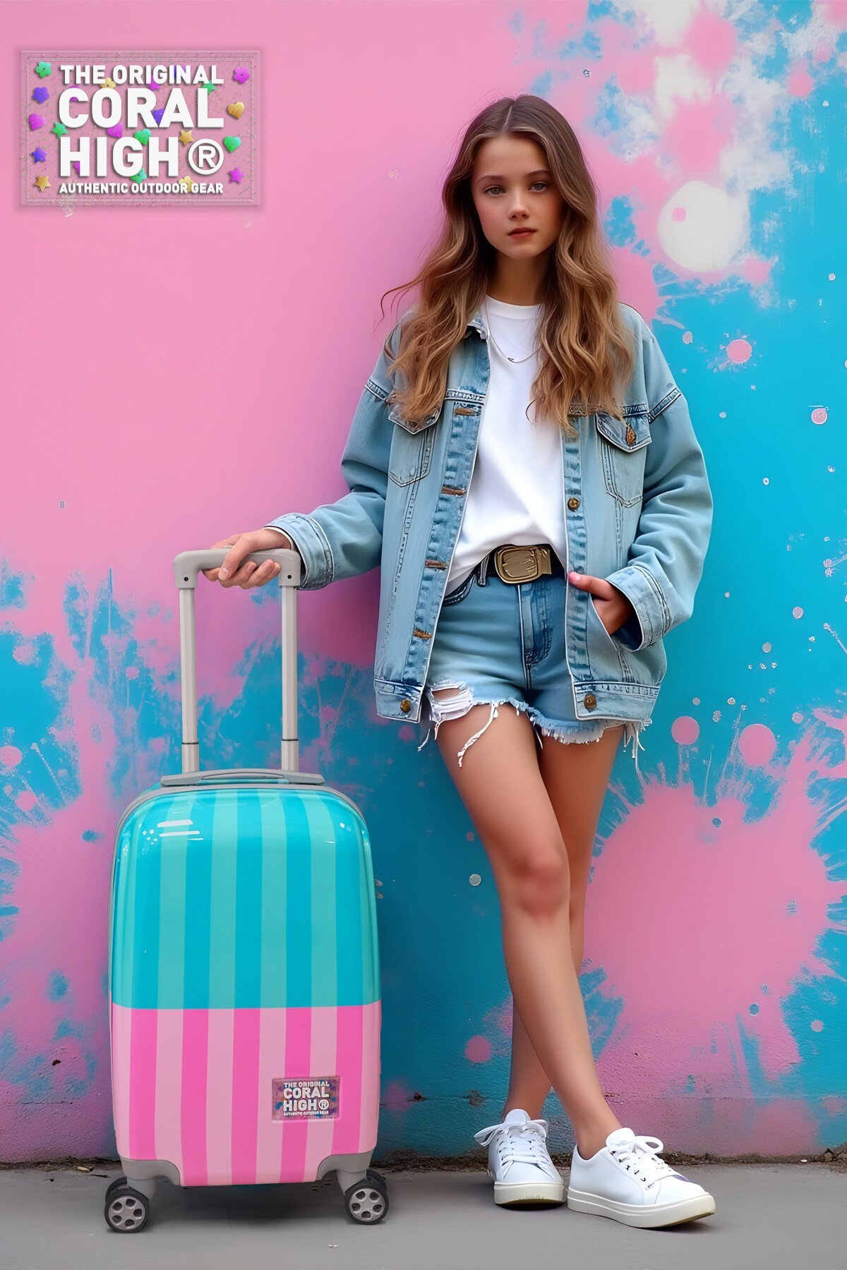 Coral High Renkli Çizgili Desenli Kabin Boy Valiz (50cm) 16554