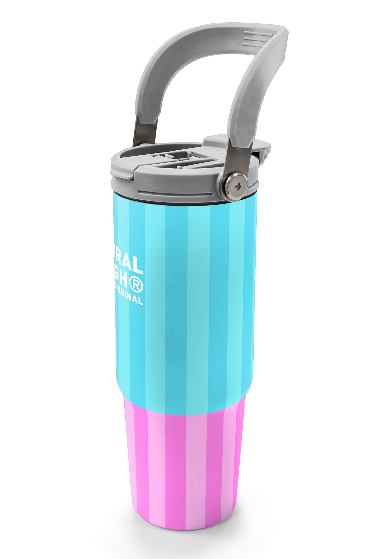Coral High Renkli Çizgili Desenli Pipetli ve Direkt İçim Çelik Termos 900 ml 38747