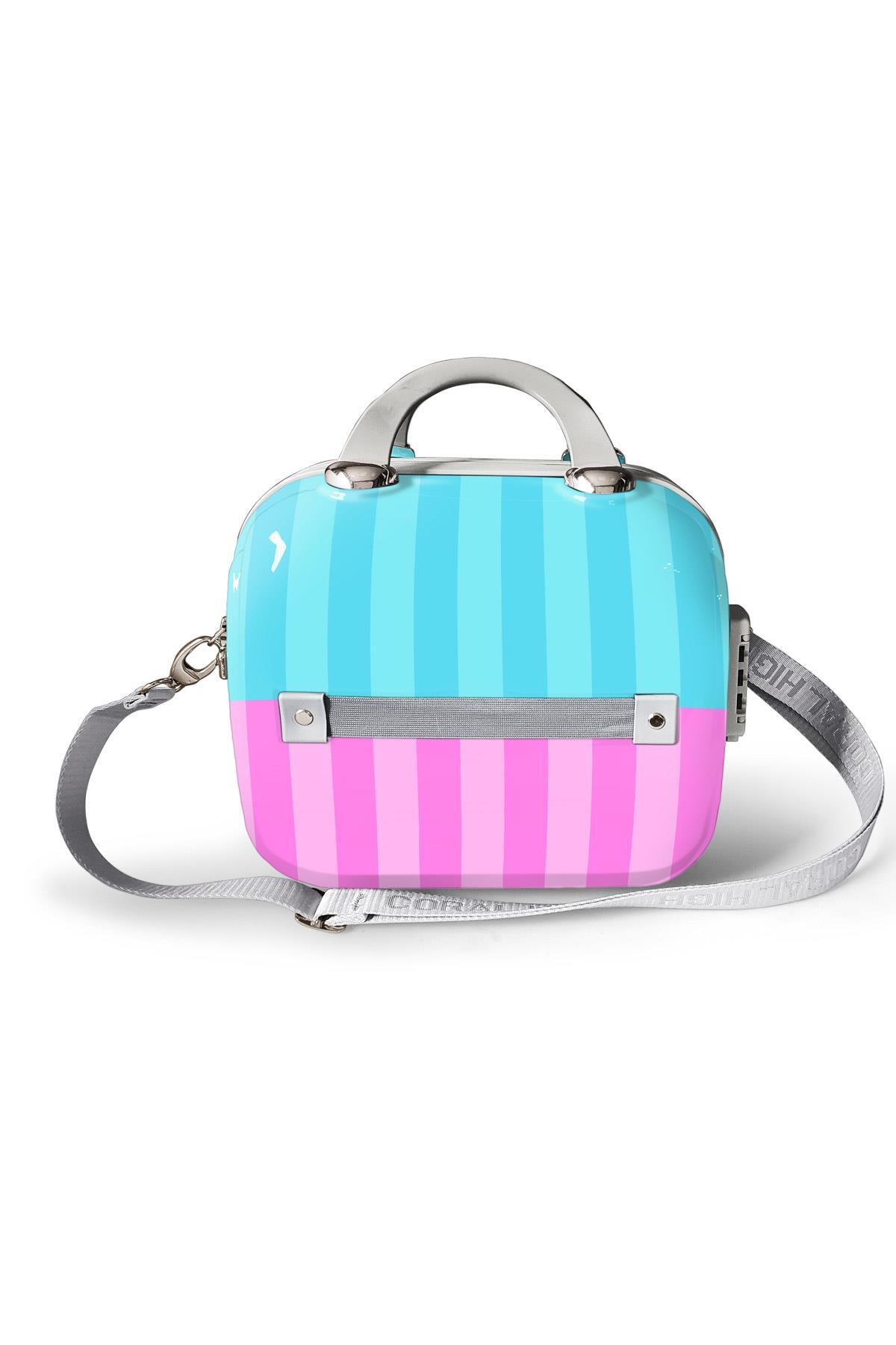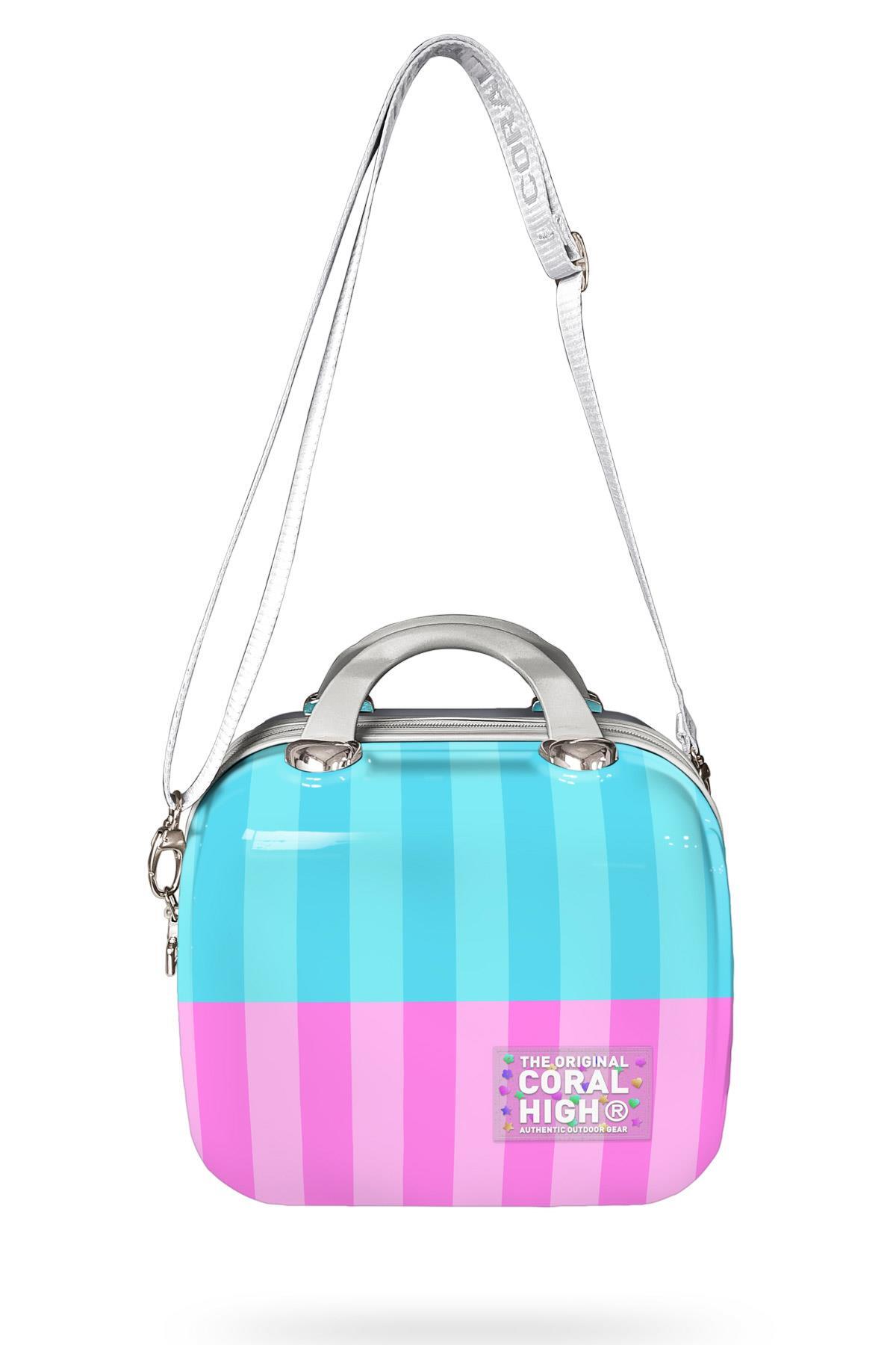 Coral High Renkli Çizgili Omuz Askılı PC Makyaj Çantası 16904