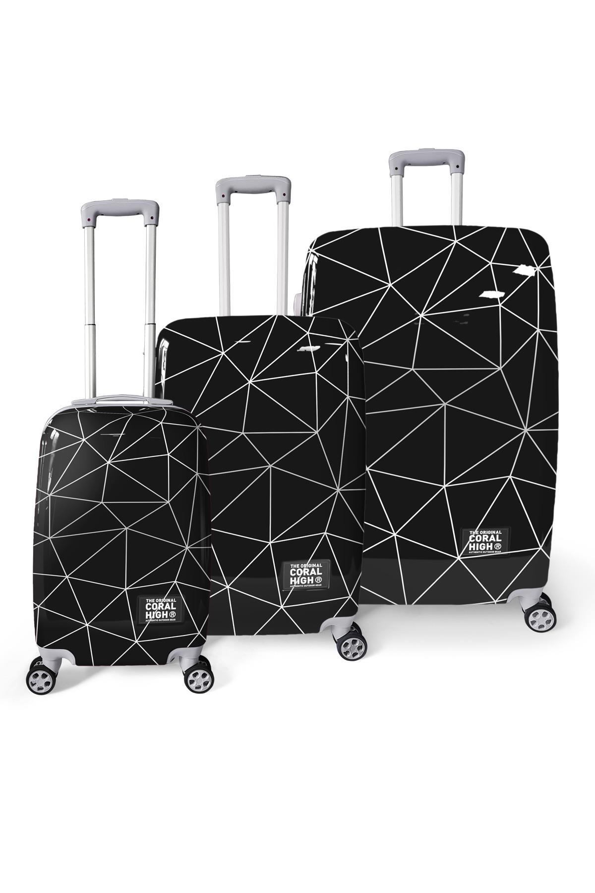 Coral High Renkli Desenli PC 3'lü Valiz Seti 16805