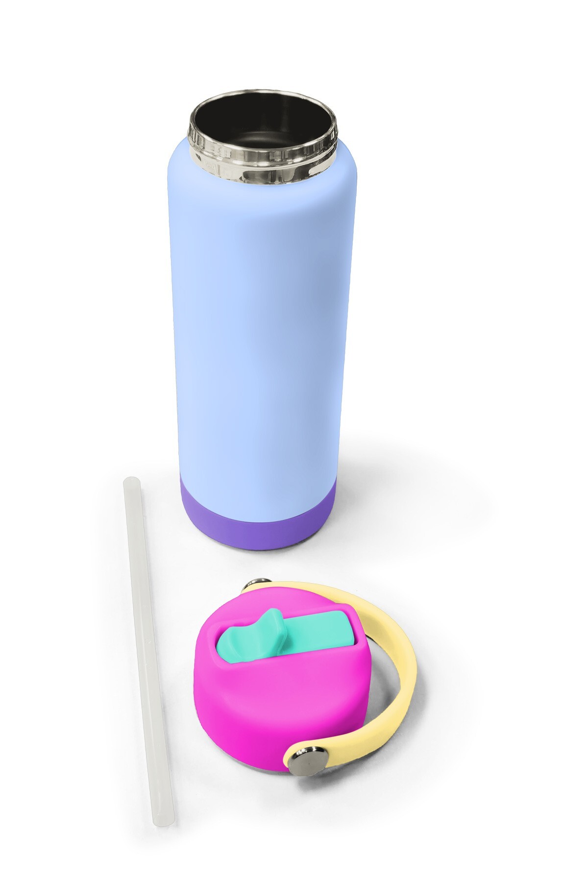 Coral High Renkli Pembe Lila Desenli Katlanır Ağızlıklı Çelik Termos 650 ml 38361