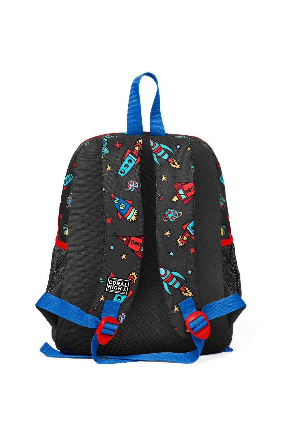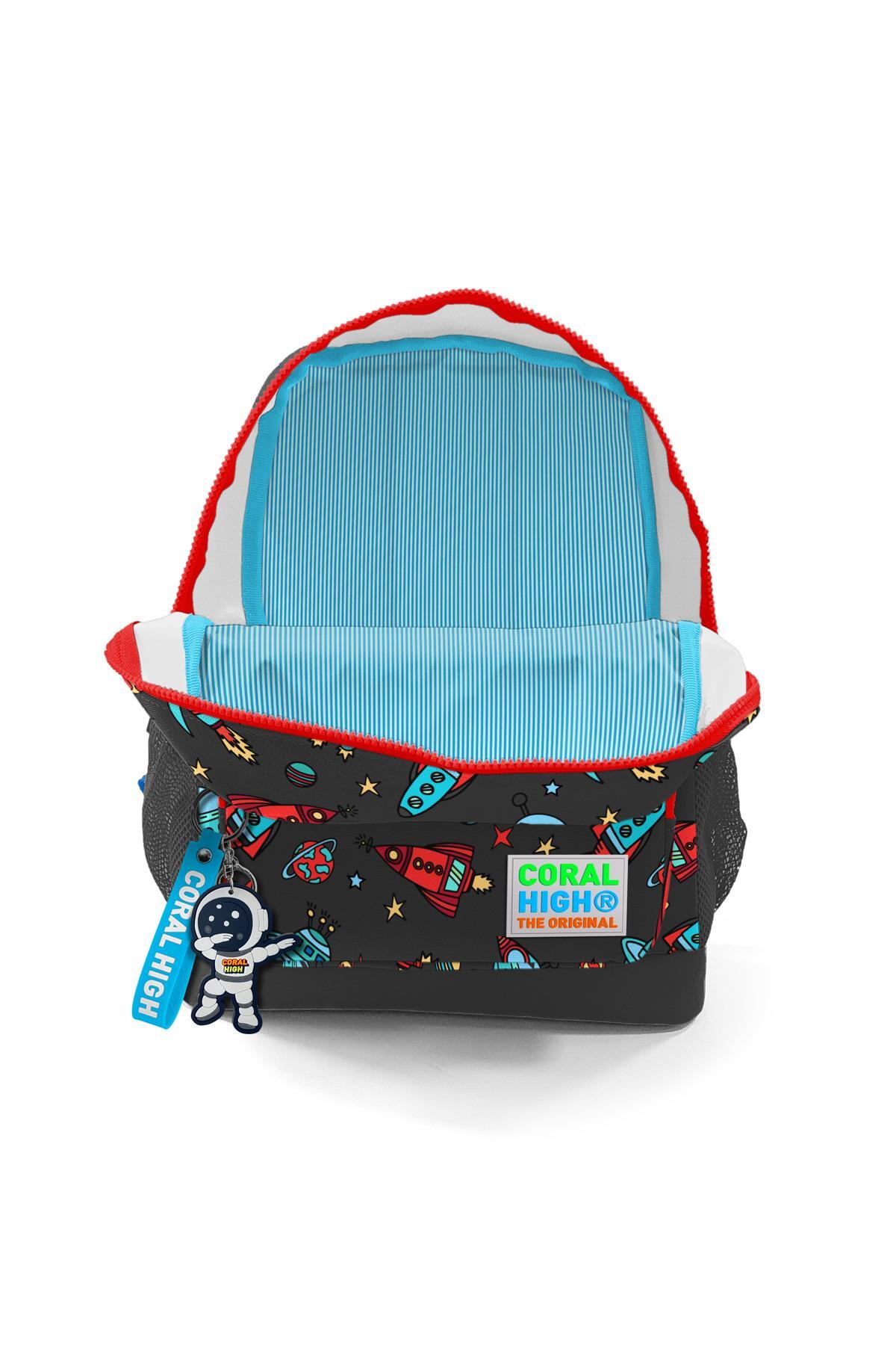 Coral High Kids Koyu Gri Kırmızı Uzay Desenli İki Bölmeli Okul Sırt Çantası 23311