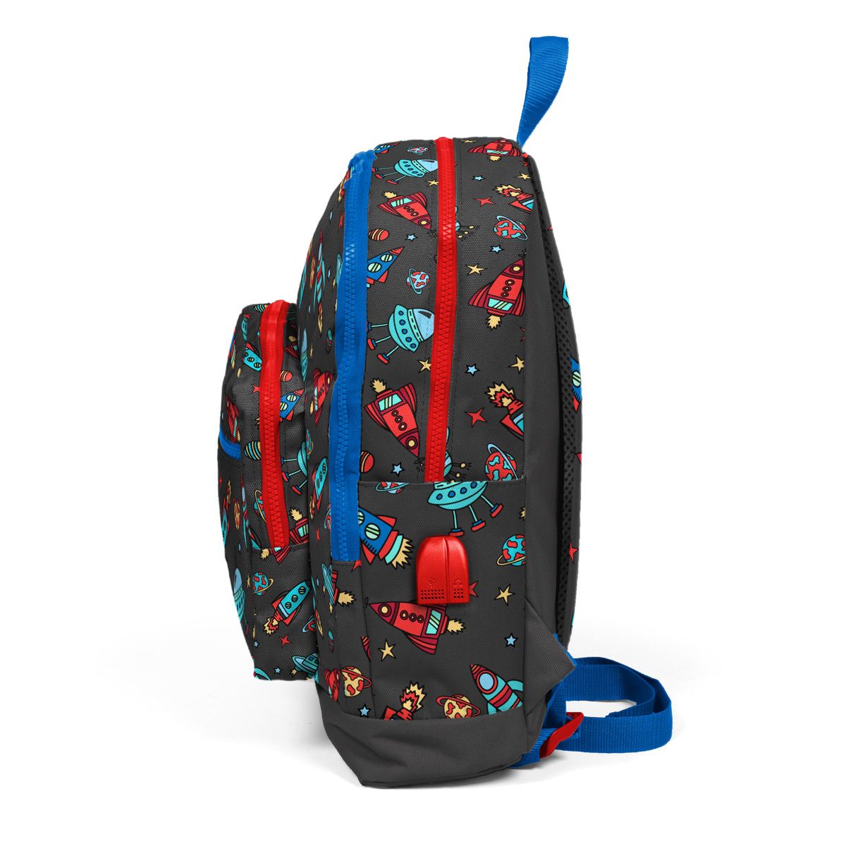 Coral High Kids Koyu Gri Kırmızı Uzay Desenli Dört Bölmeli USB'li Okul Sırt Çantası 23279