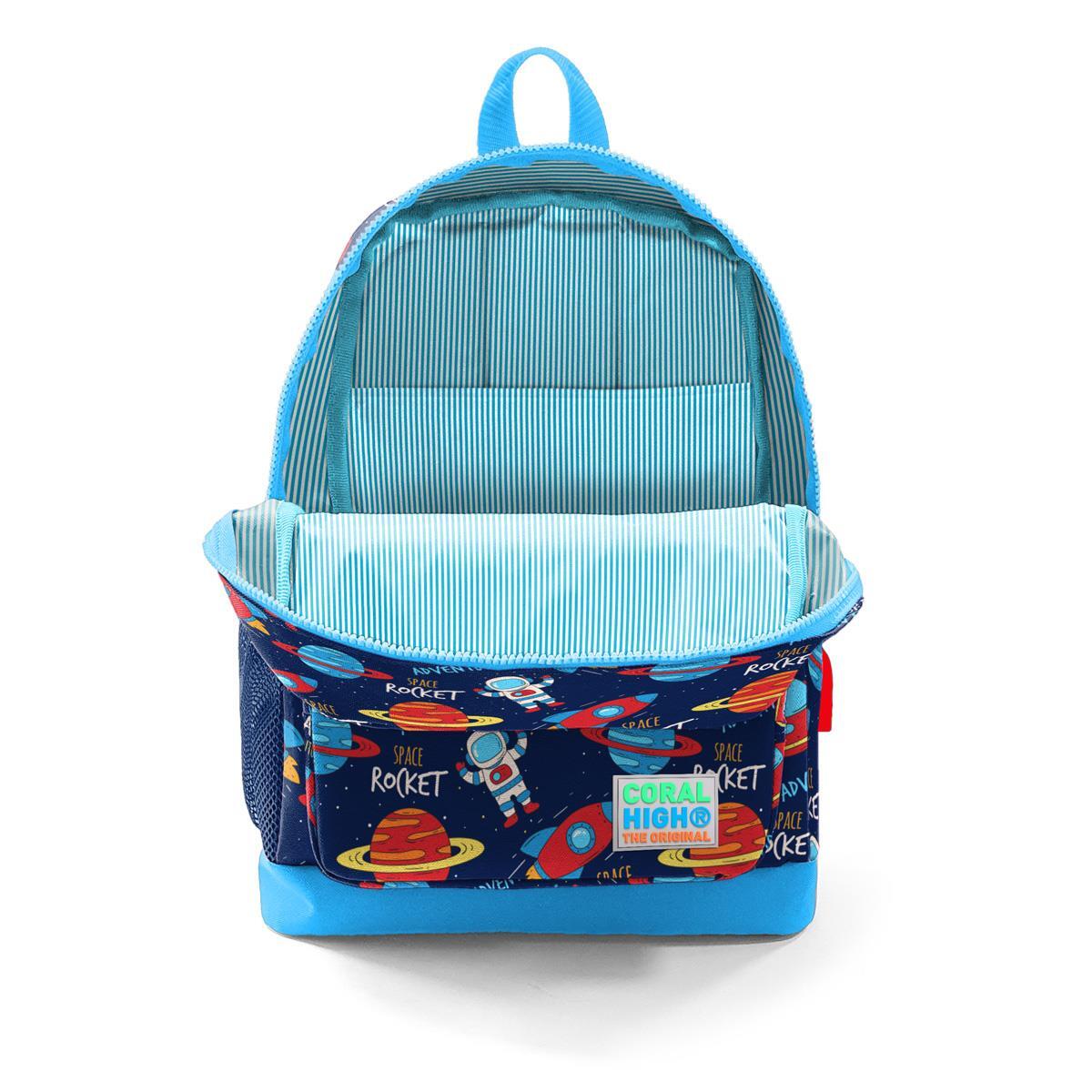 Coral High Kids Lacivert Mavi Uzay Desenli Dört Bölmeli USB'li Okul Sırt Çantası 23280