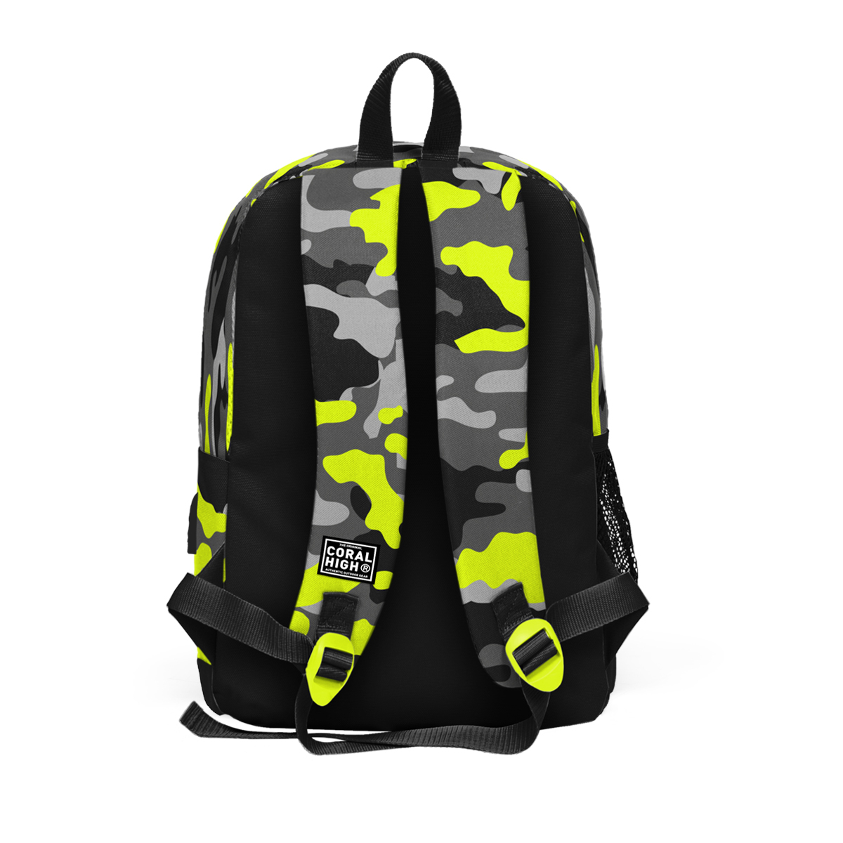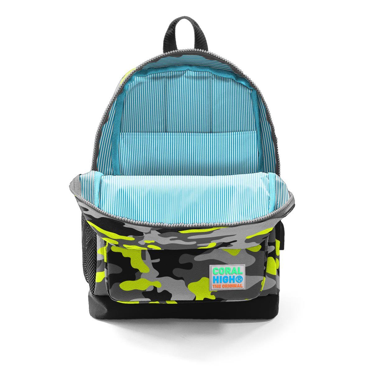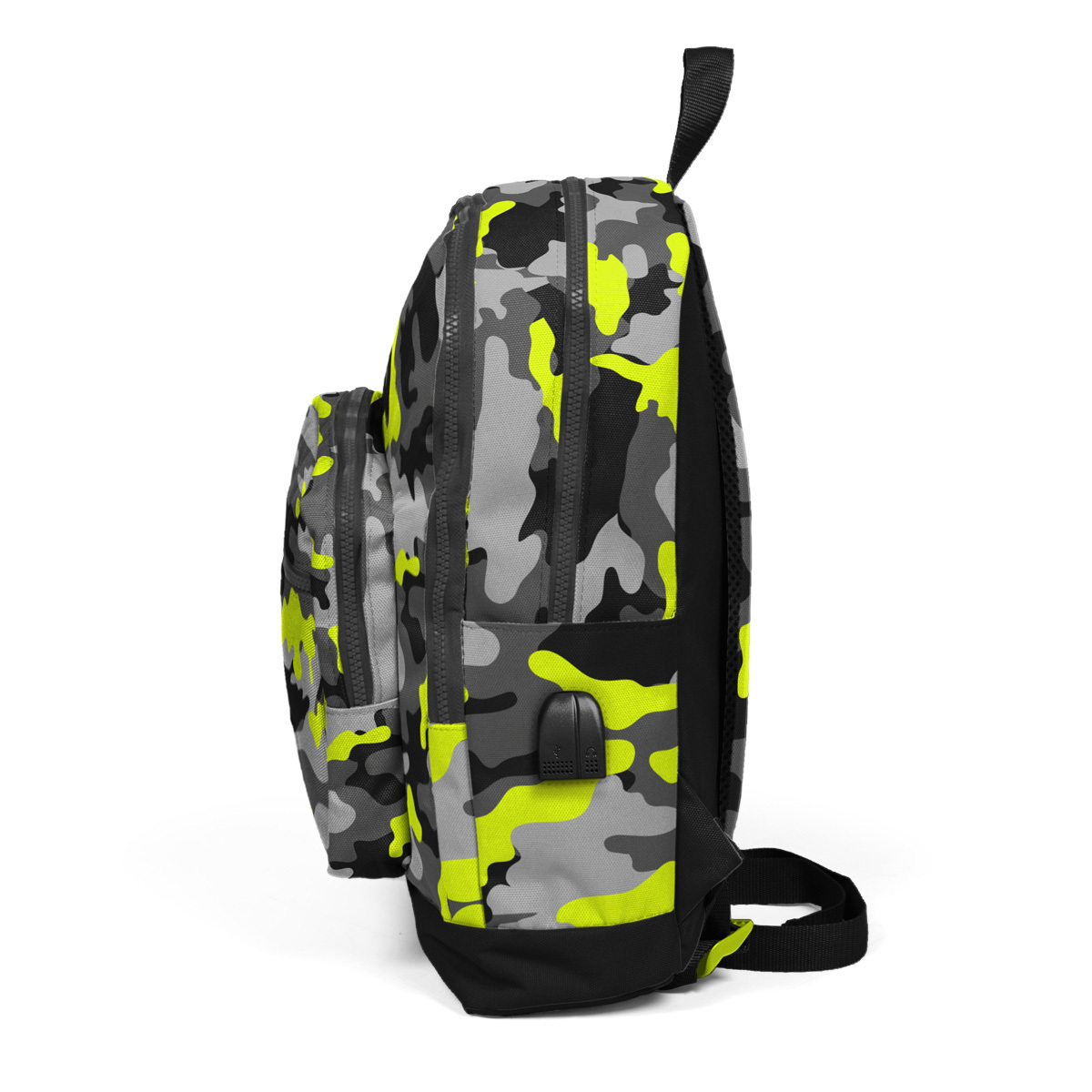 Coral High Kids Siyah Gri Kamuflaj Desenli Dört Bölmeli USB'li Okul Sırt Çantası 23291