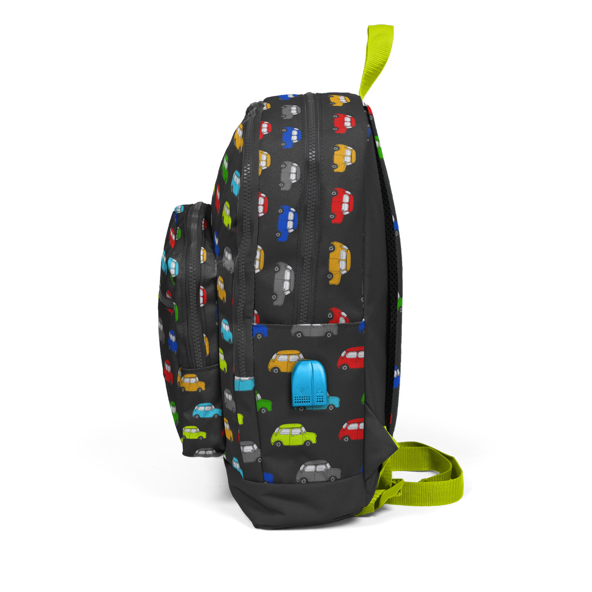 - Çantanızın yan tarafında haraket halinde veya acil bir durumda çantanızda taşıdığınız Power bank ve benzeri güç kaynağı ile hızlıca mobil cihazınızı şarj etmenizi kolaylaştıracak bir USB çıkışı bulunmaktadır.
