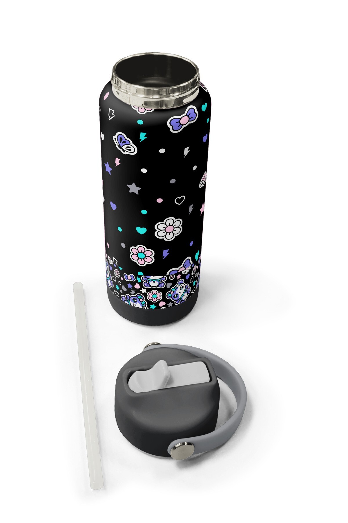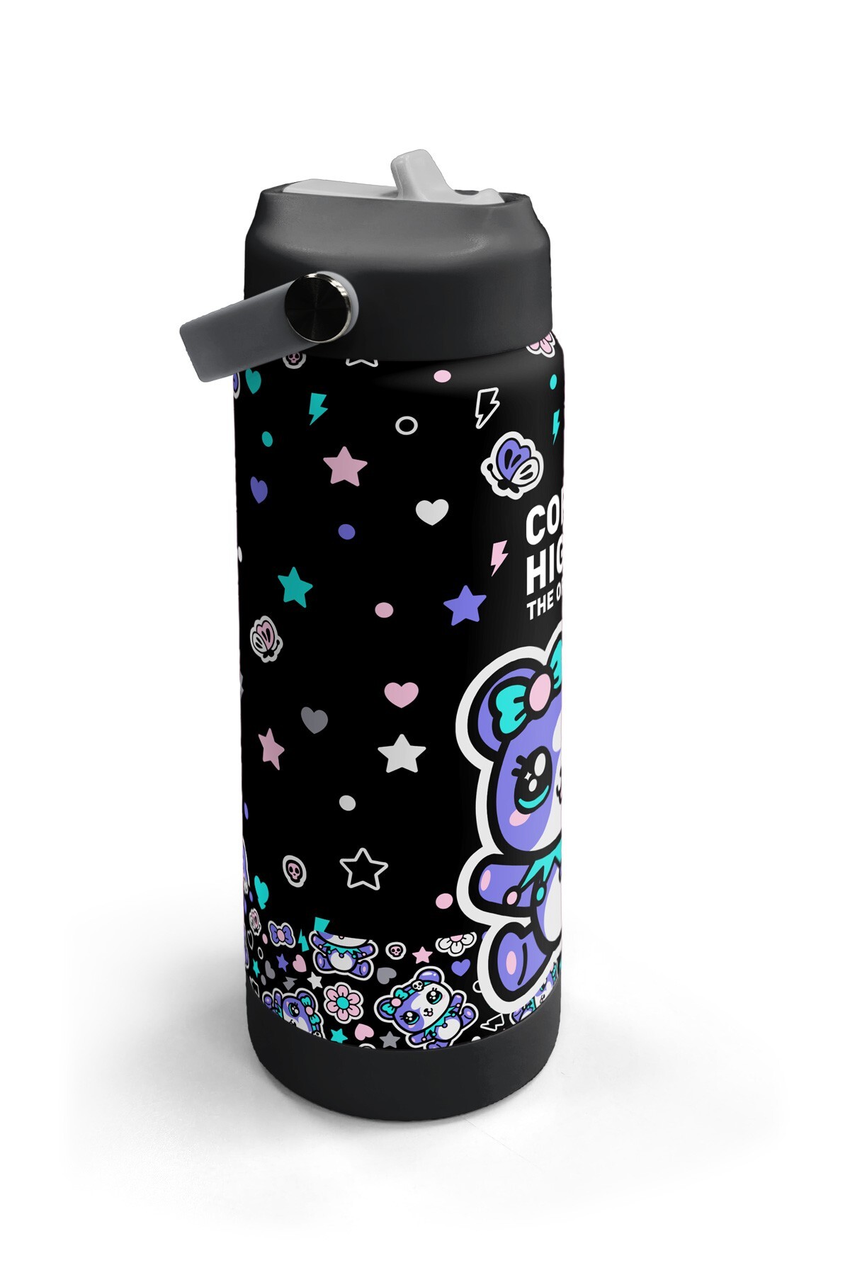 Coral High Siyah Ayıcık Desenli Katlanır Ağızlıklı Çelik Termos 650 ml 38324