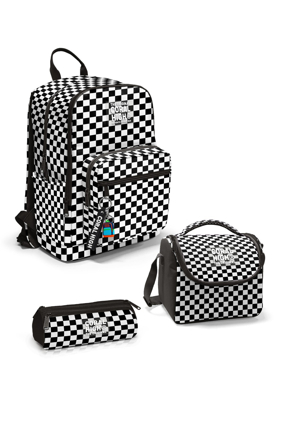 Coral High Siyah Beyaz Dama Desenli 3’lü Okul Çanta Seti SET0123677