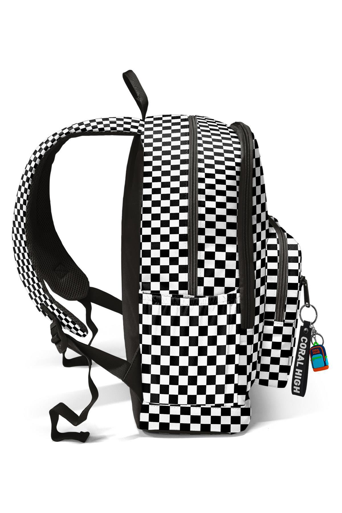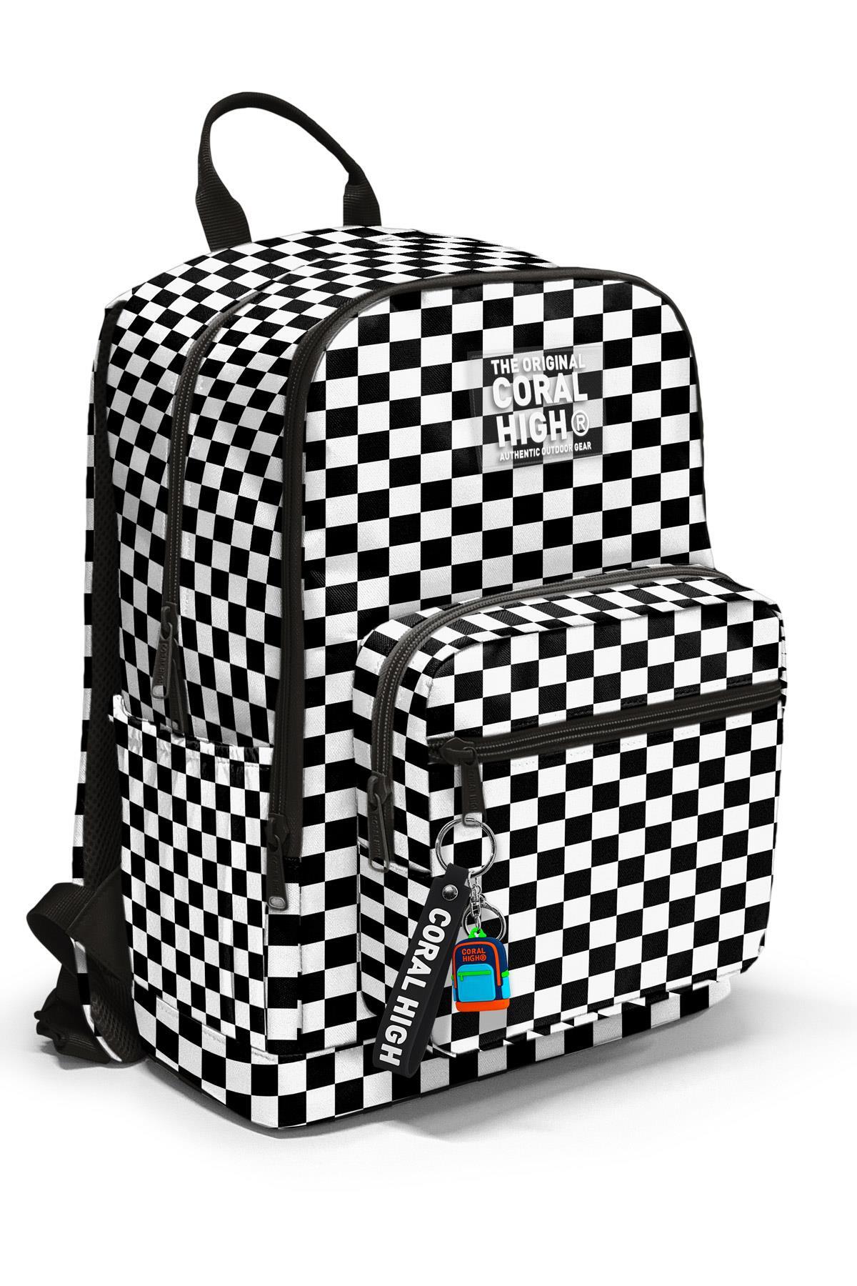 Coral High Siyah Beyaz Dama Desenli Okul Sırt Çantası 23677