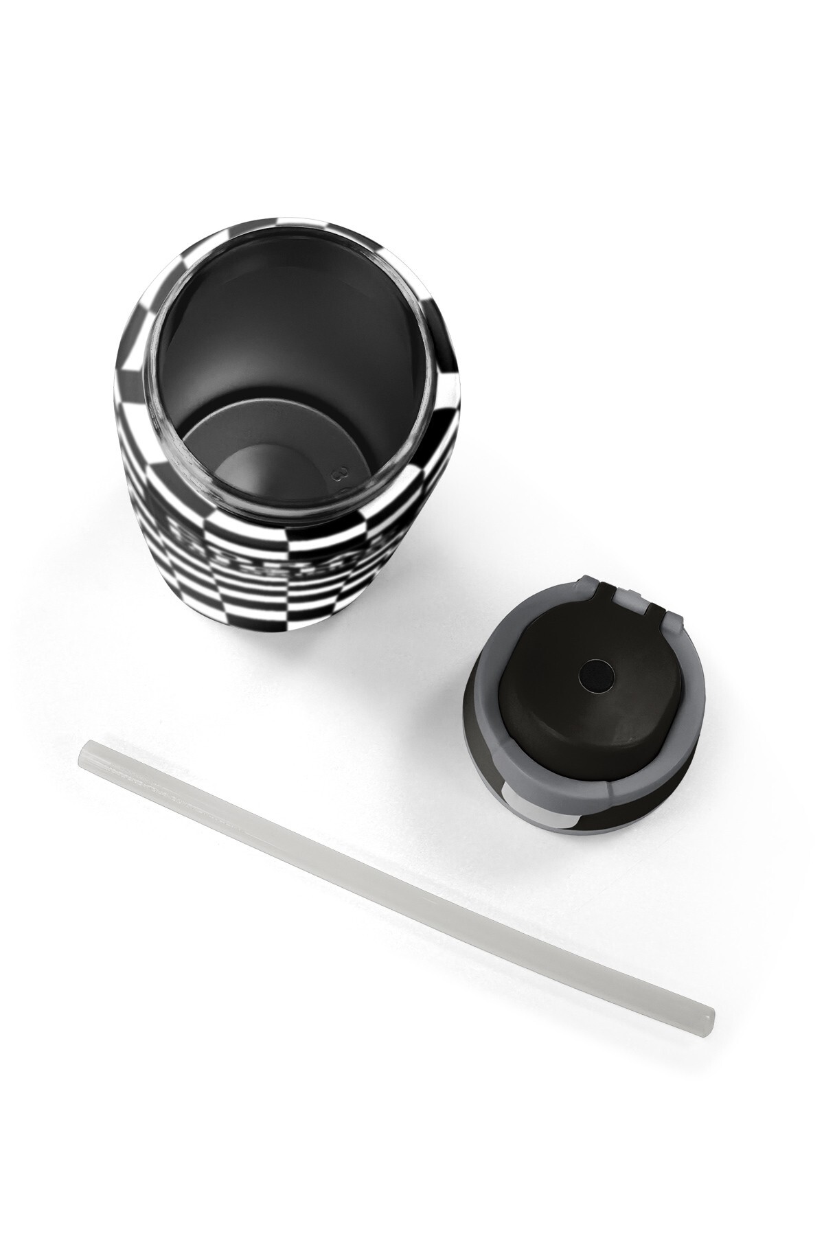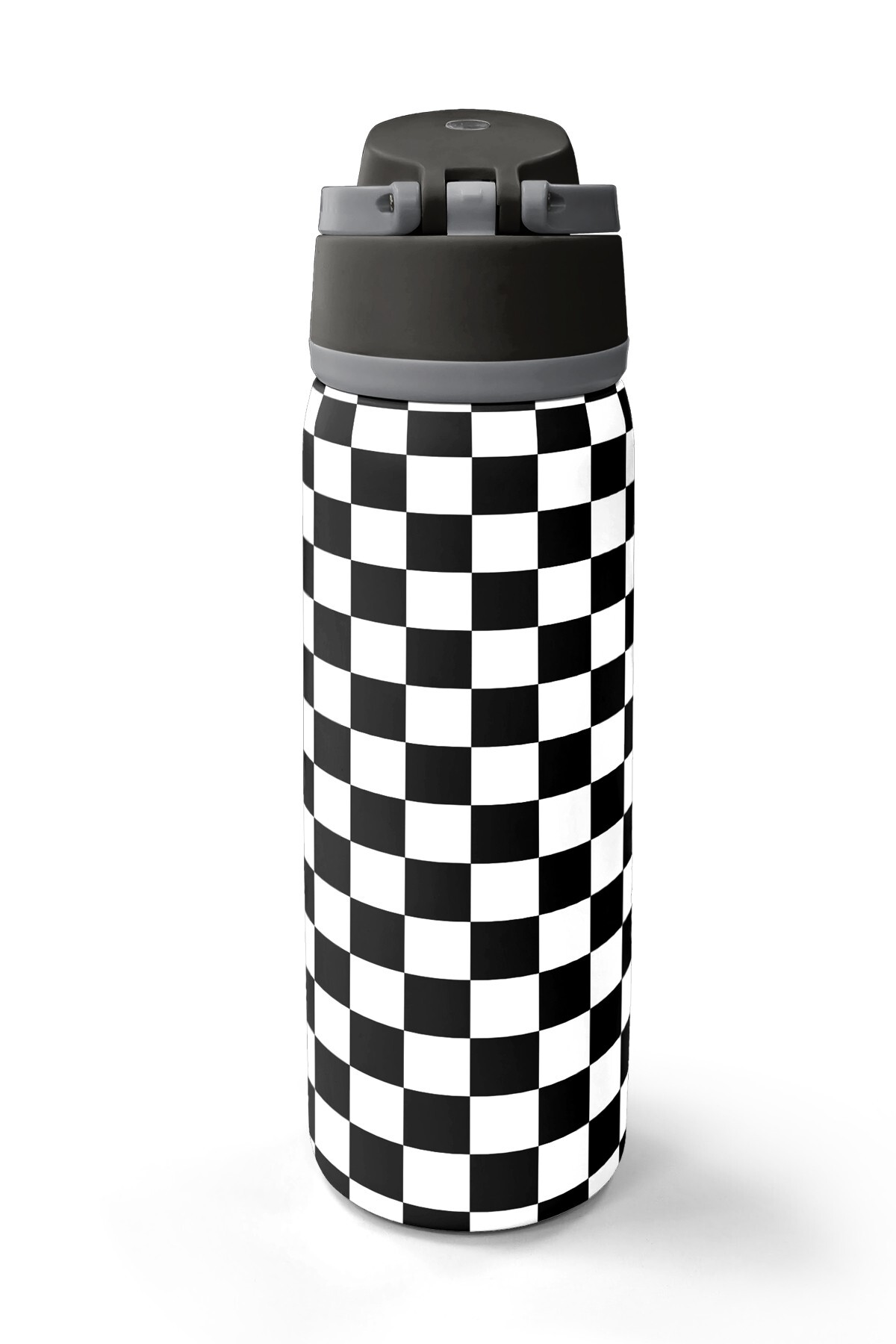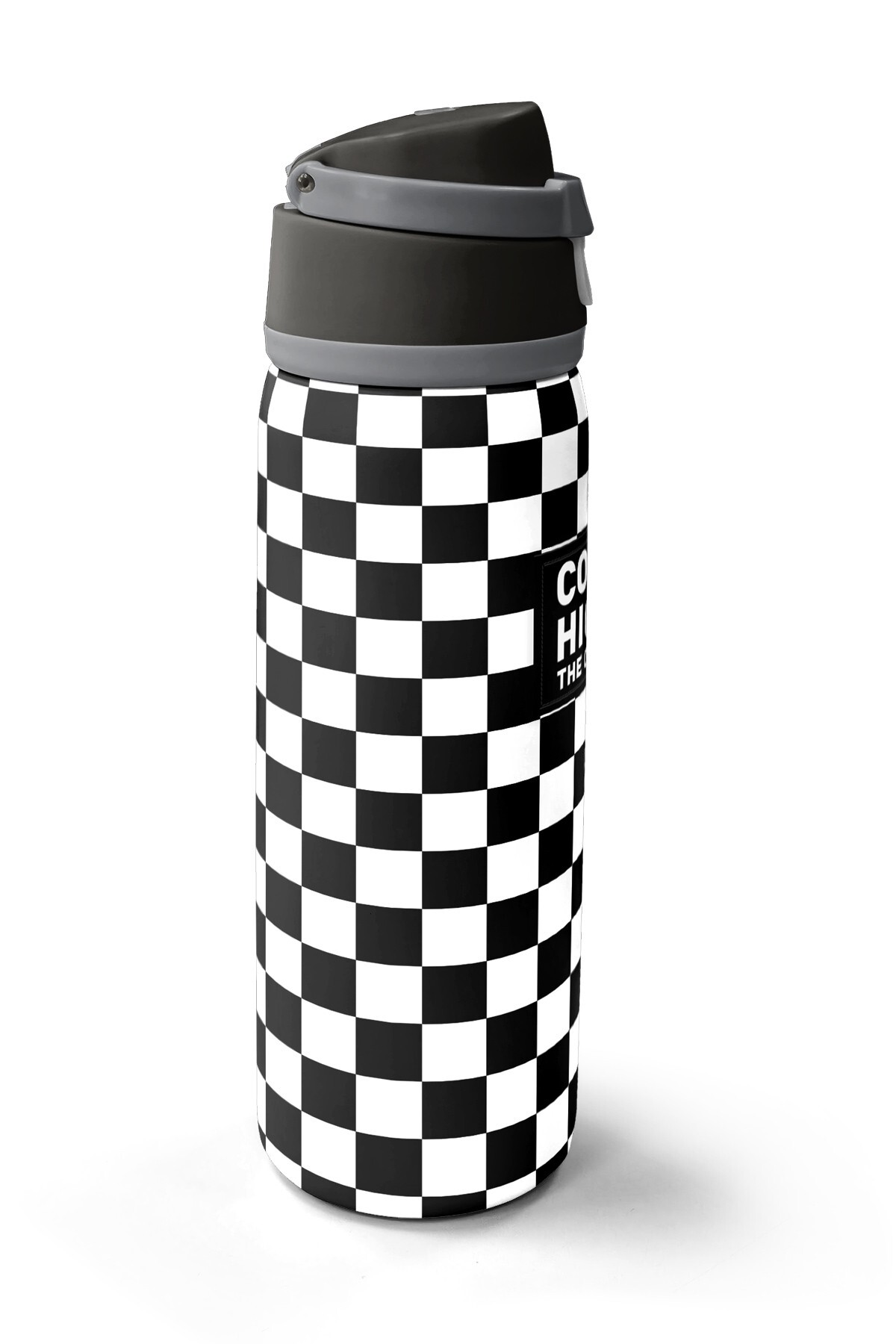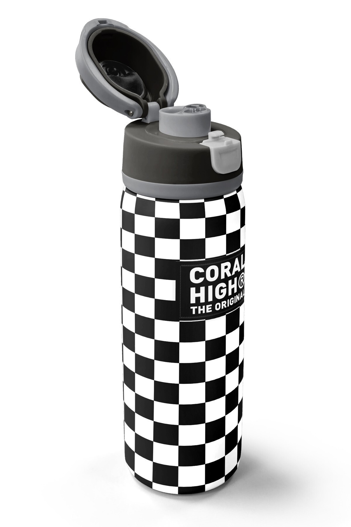 Coral High Siyah Beyaz Dama Desenli Pipetli ve Direkt İçim Çelik Termos 800 ml 38538