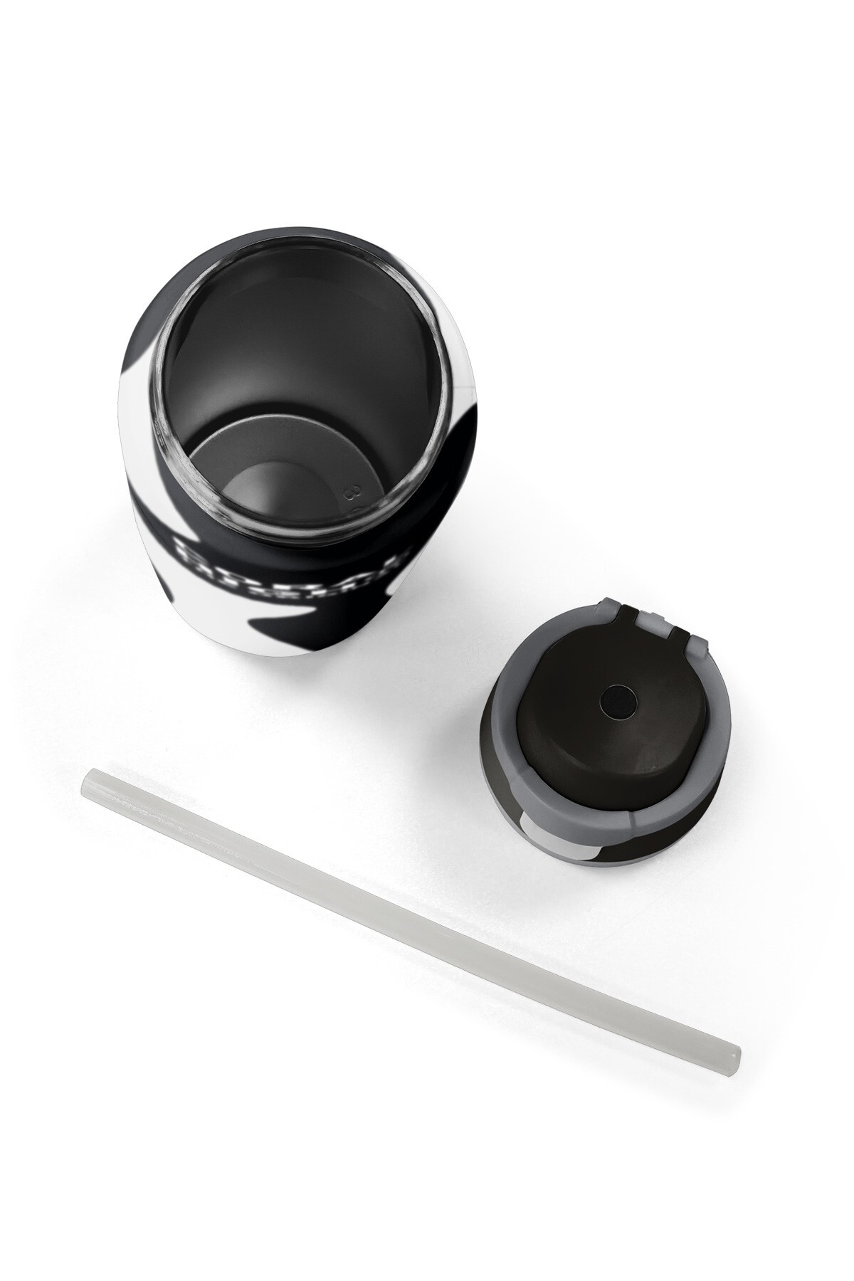 Coral High Siyah Beyaz Desenli Pipetli ve Direkt İçim Çelik Termos 800 ml 38547