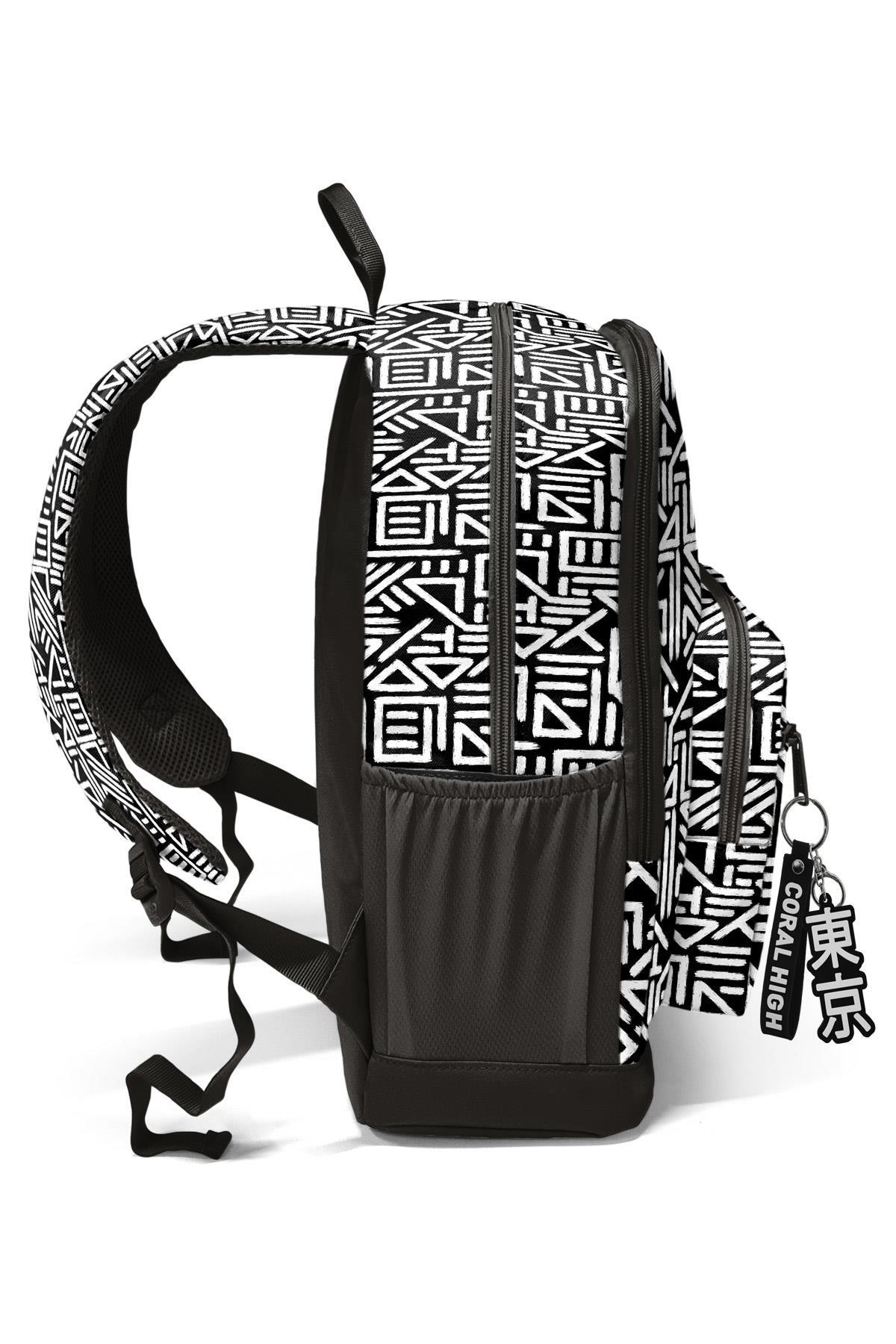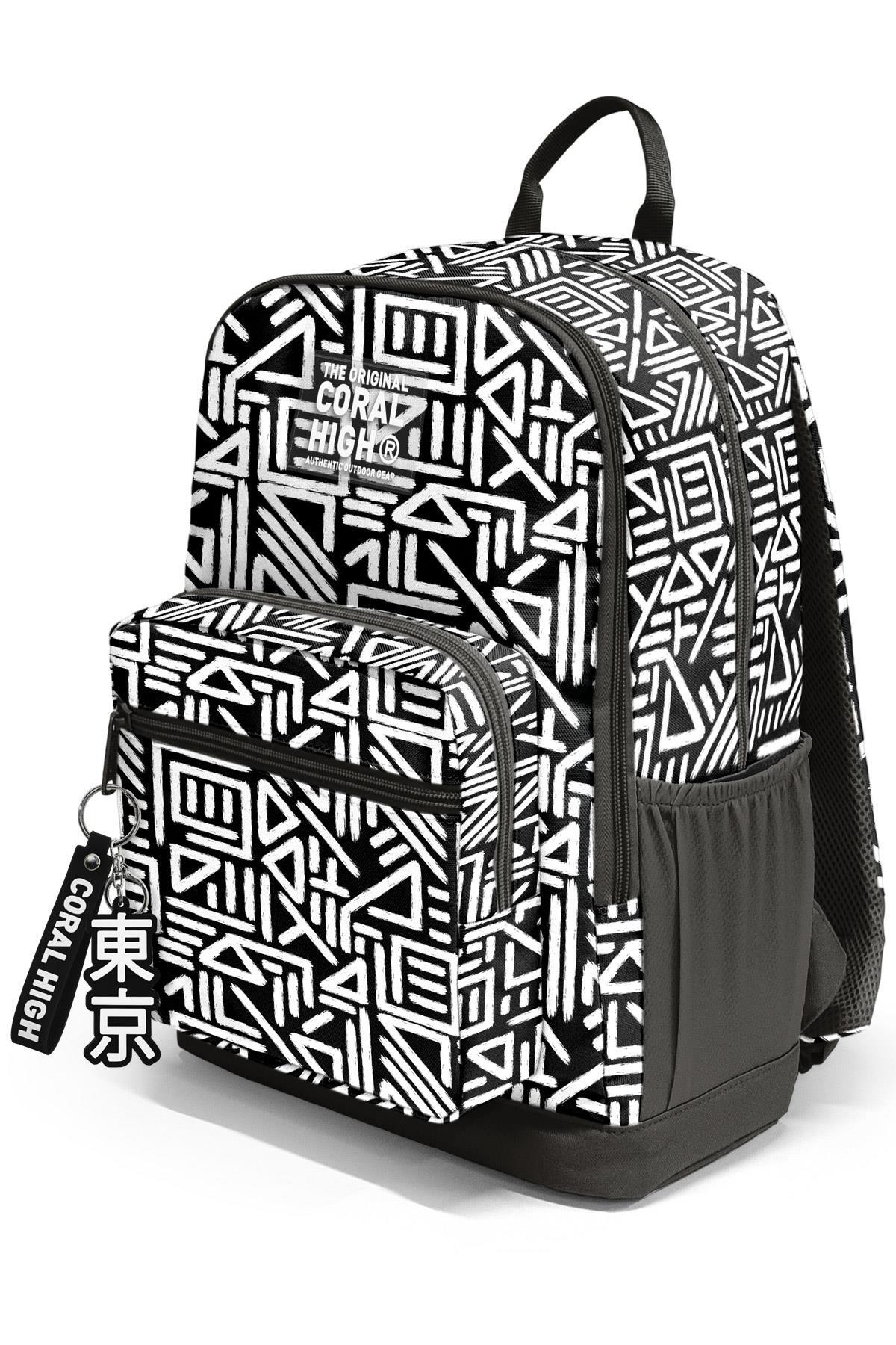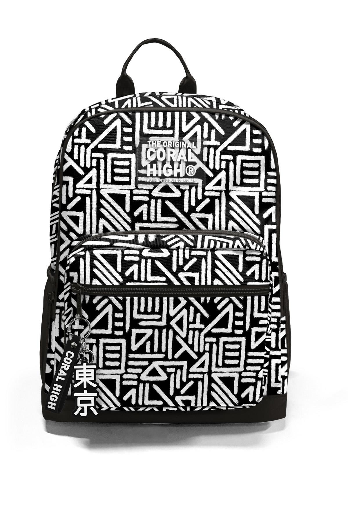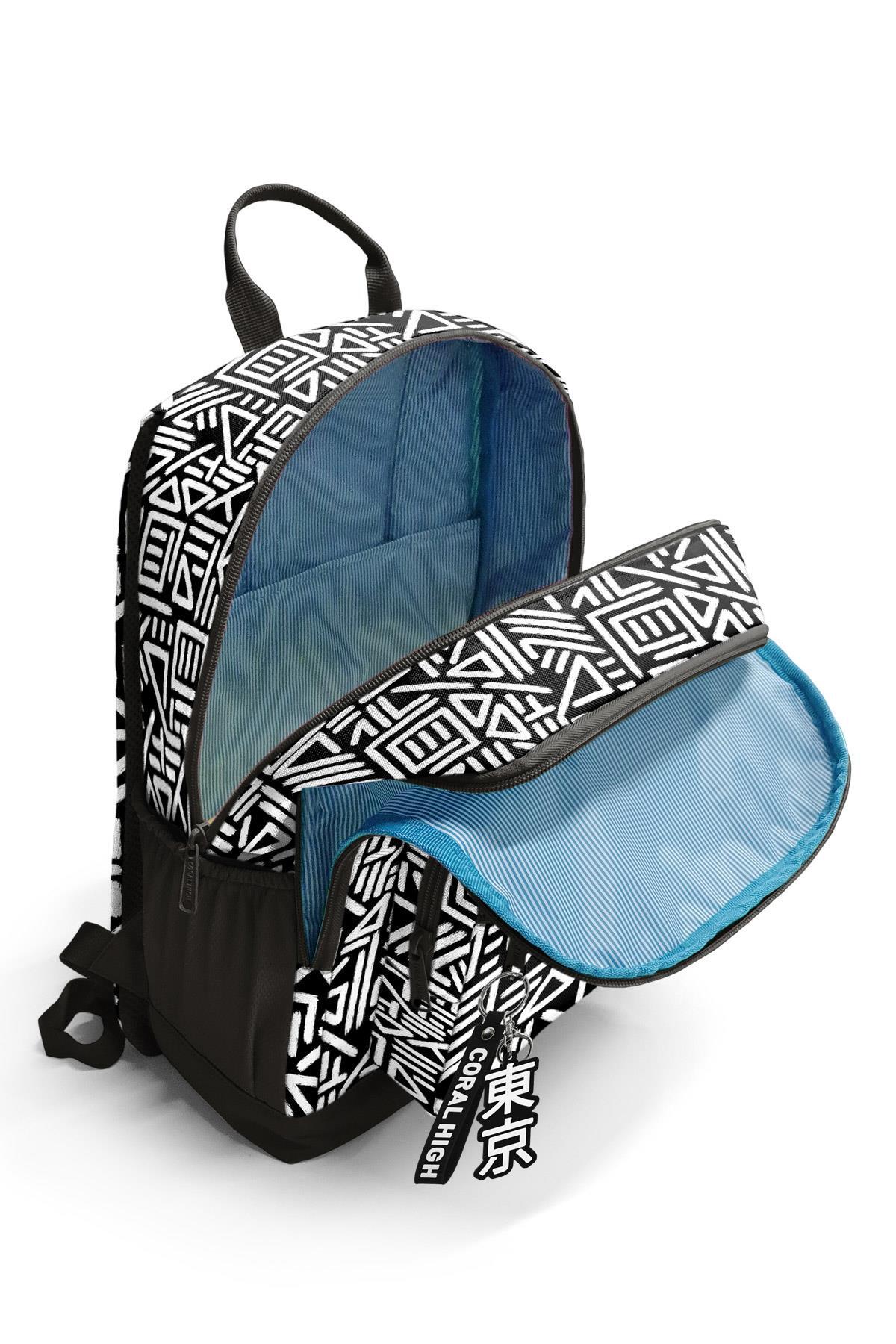 Coral High Siyah Beyaz Geomatrik Desenli Okul Sırt Çantası 23682