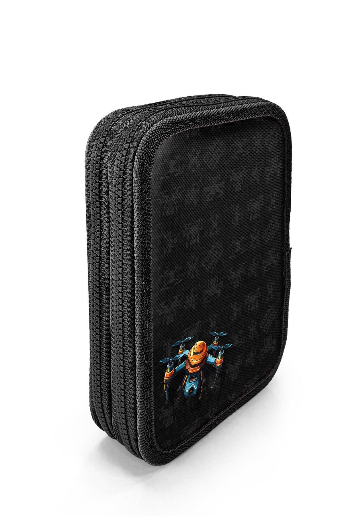 Coral High Siyah Drone Desenli Çift Katlı Kalem Çanta 11158