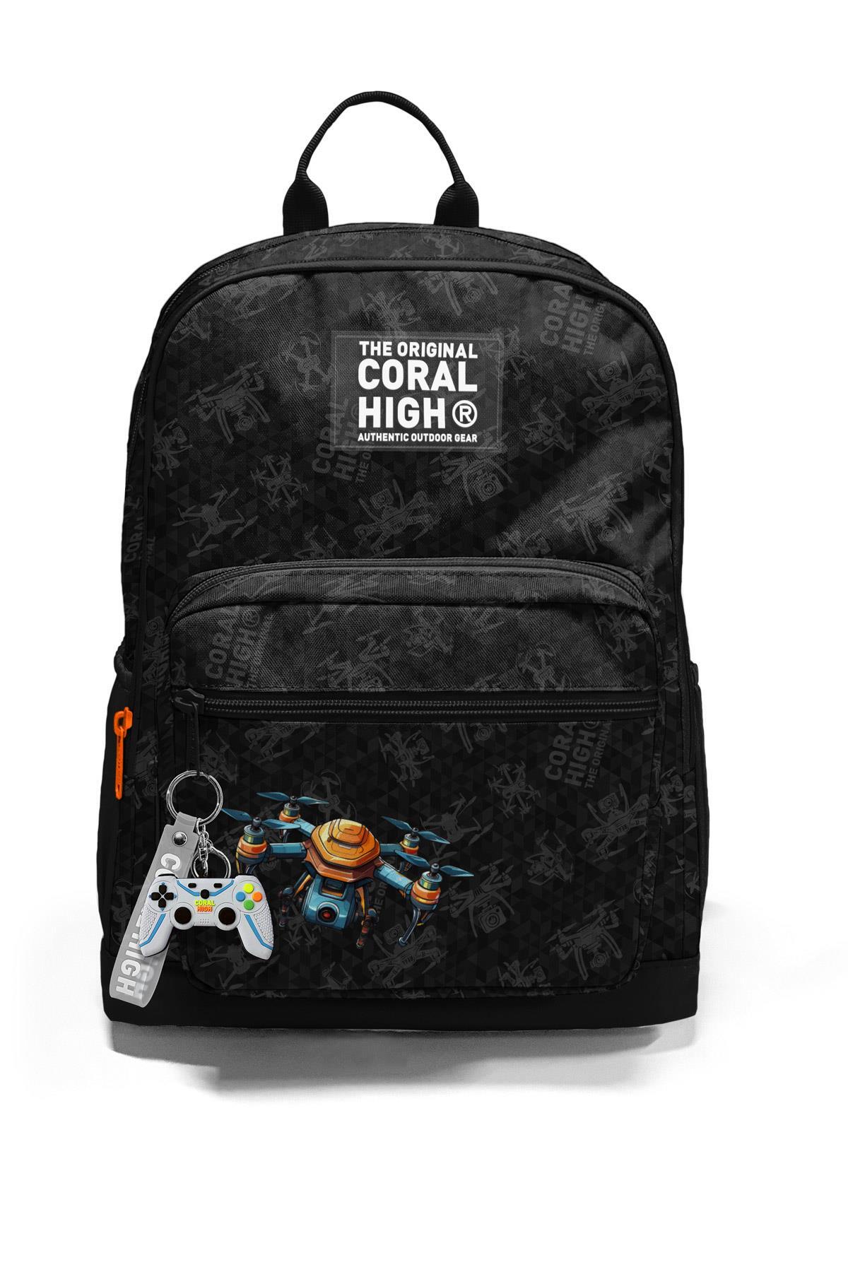 Coral High Siyah Drone Desenli Okul Sırt Çantası 23691