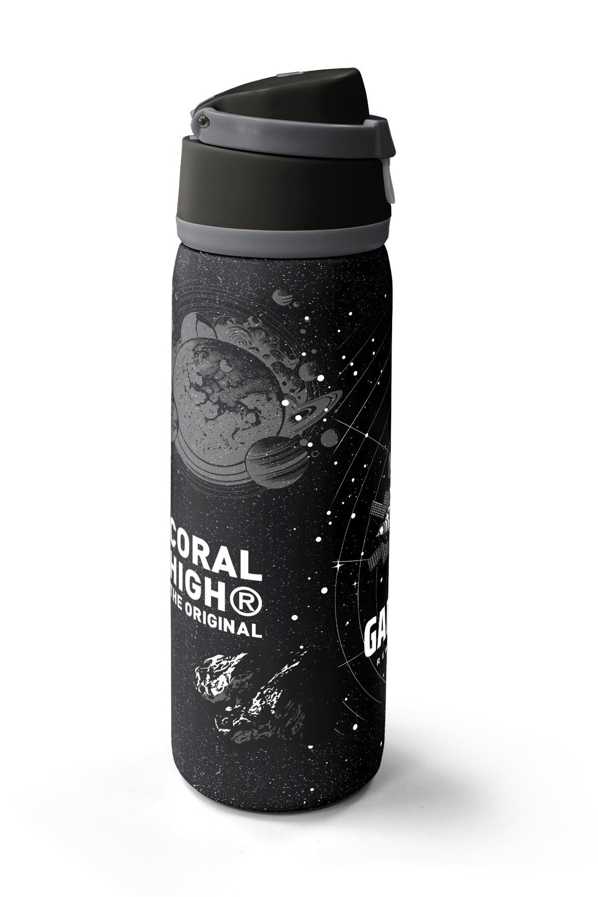 Coral High Siyah Galaxy Desenli Pipetli ve Direkt İçim Çelik Termos 800 ml 38533