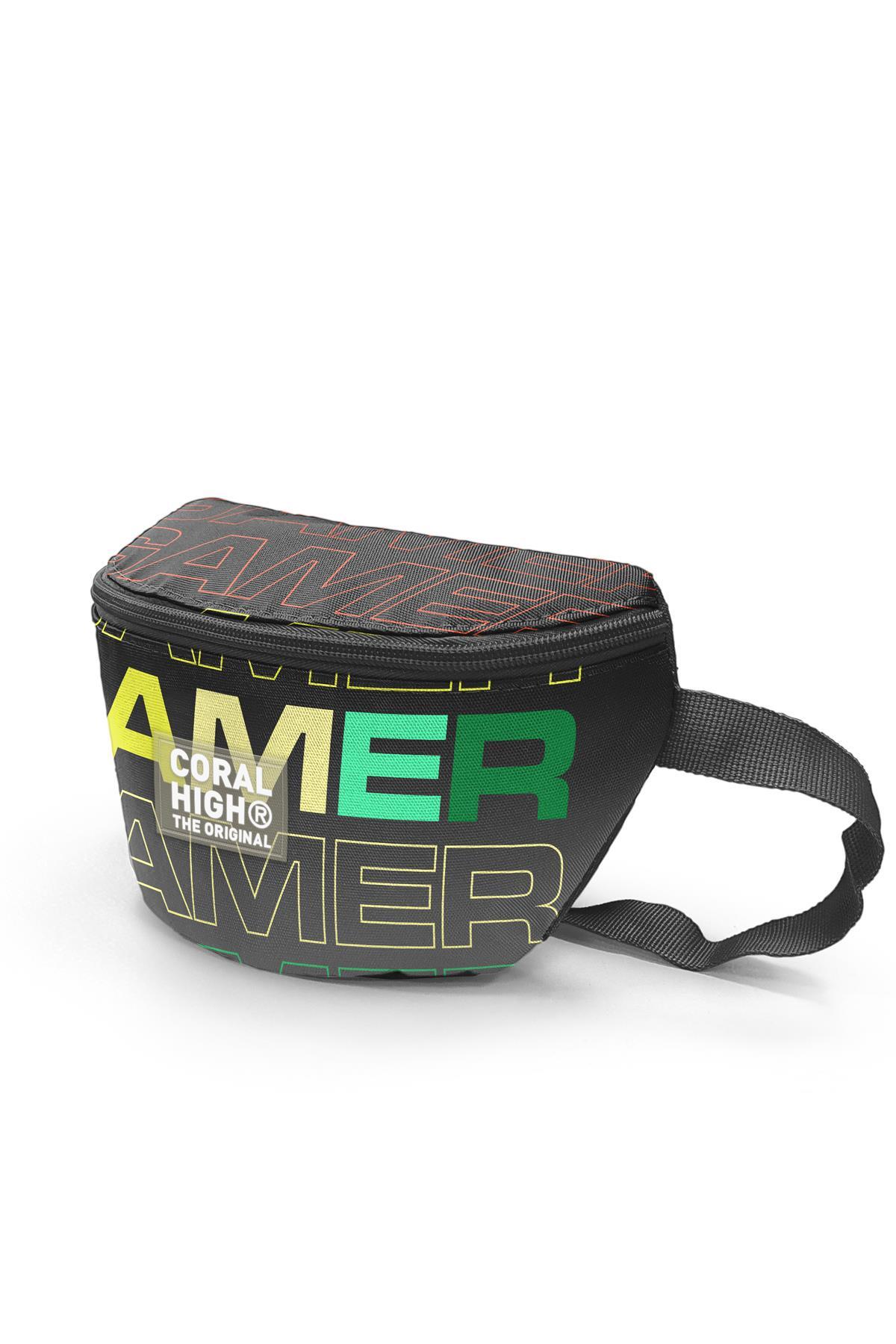 Coral High Siyah Gri Gamer Desenli Bel Çantası 11548