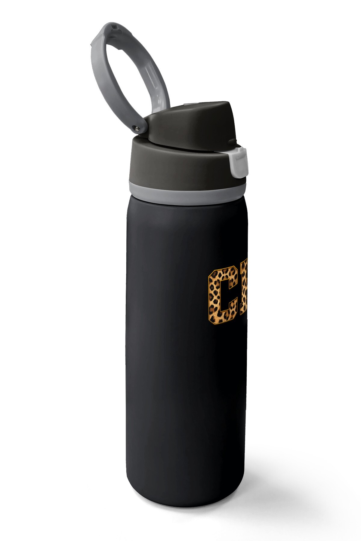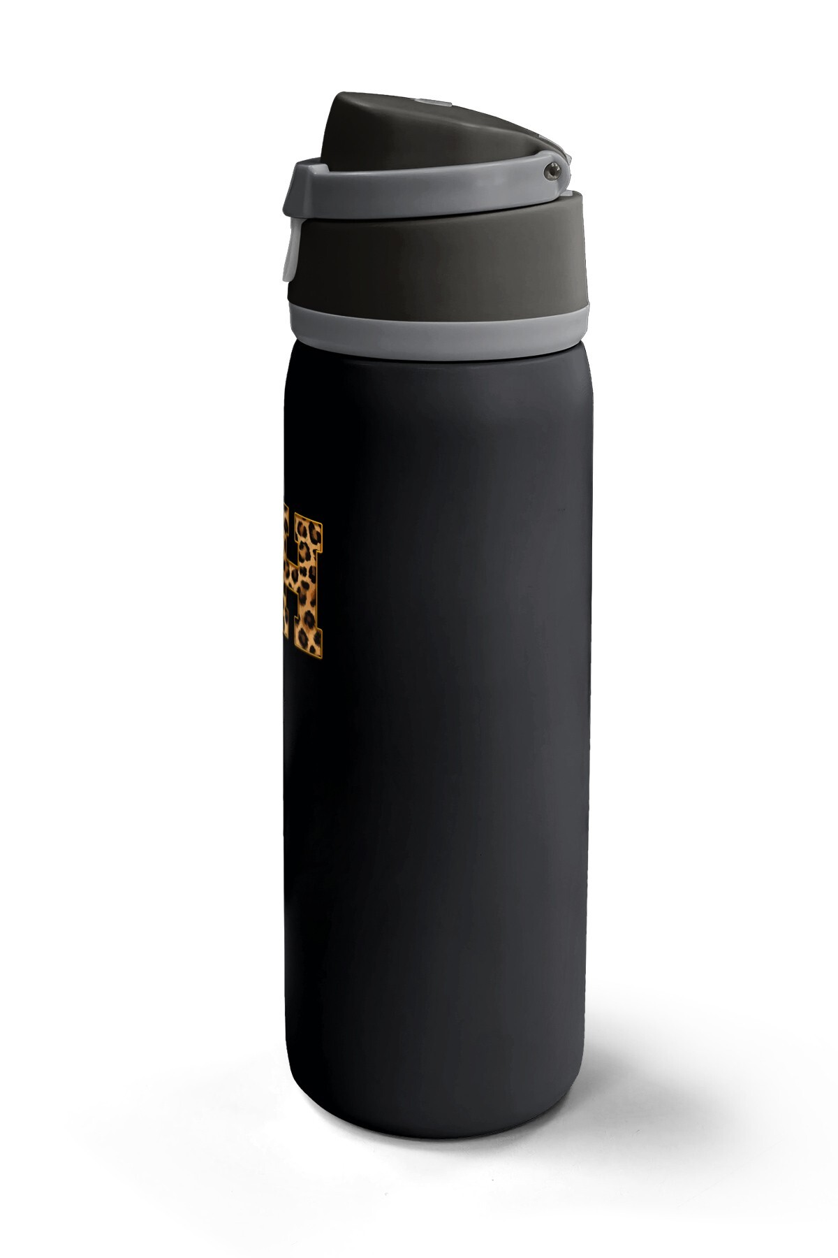 Coral High Siyah Leopar CH Harf Desenli Pipetli ve Direkt İçim Çelik Termos 800 ml 38506