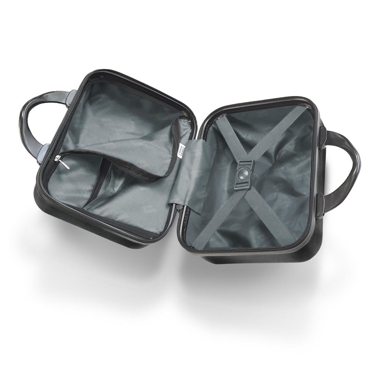 Valiz ve makyaj çantaları plastik taşıma kulpuna sahiptir.