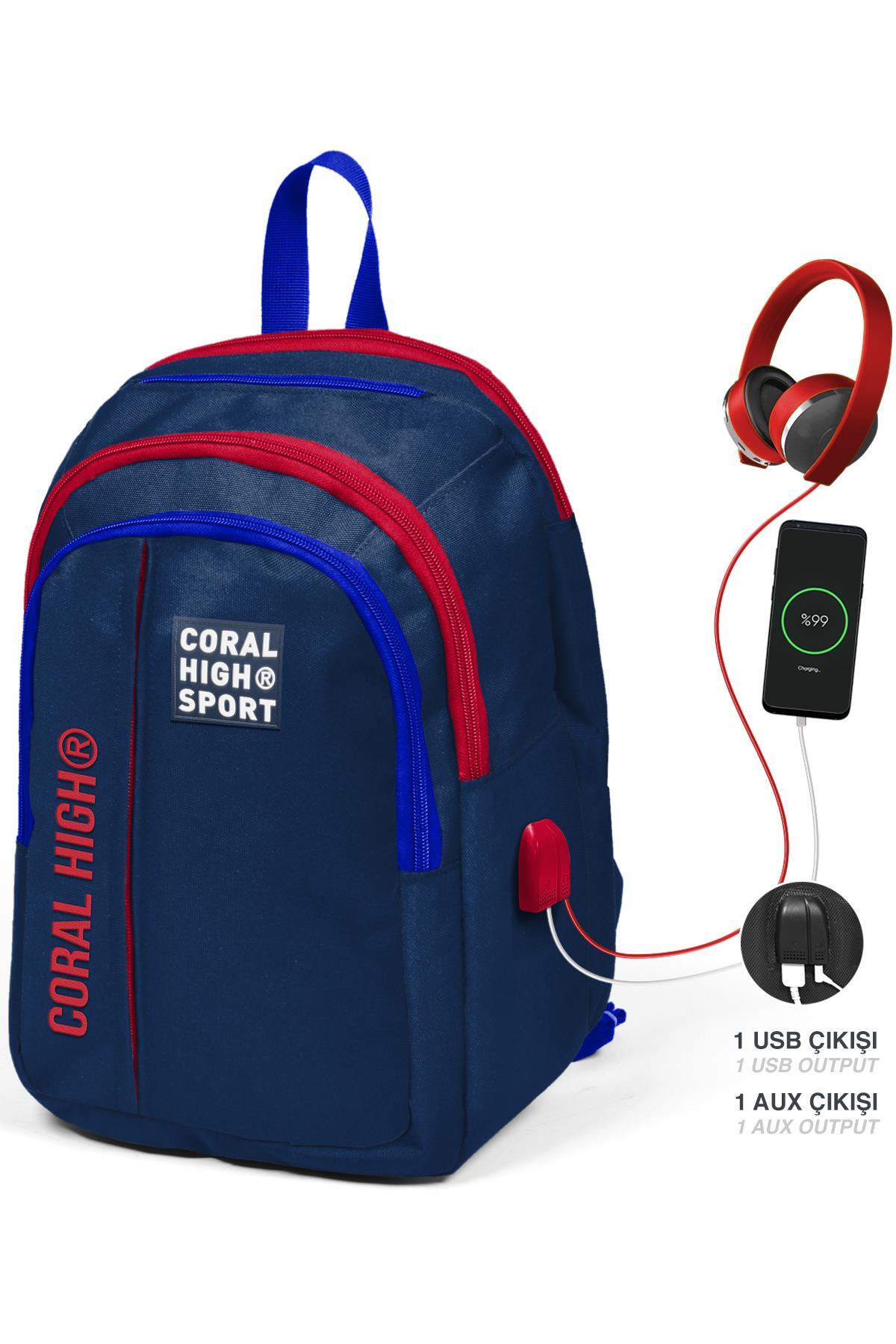 Beş bölmeli USB ve AUX Çıkışlı Sırt Çantası.