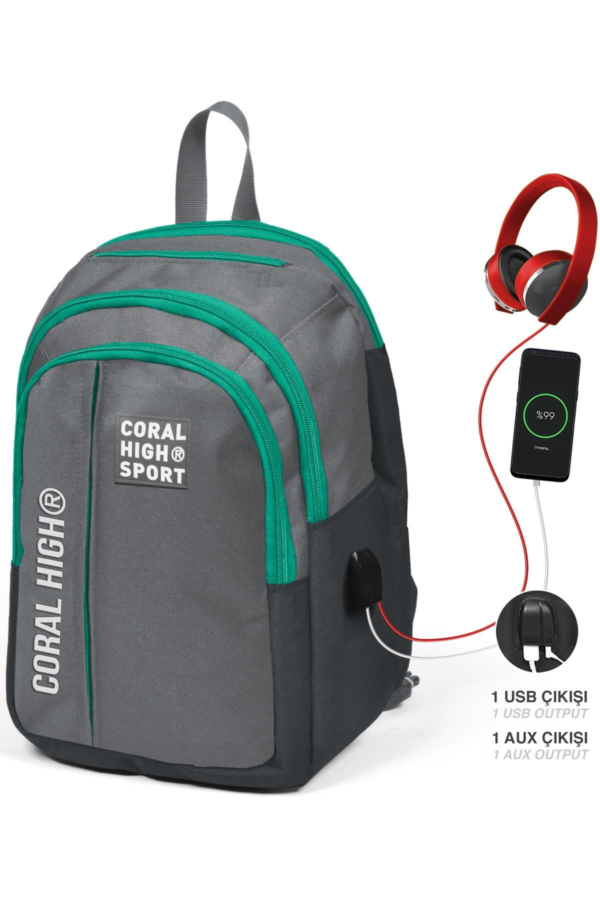 Beş bölmeli USB ve AUX Çıkışlı Sırt Çantası.