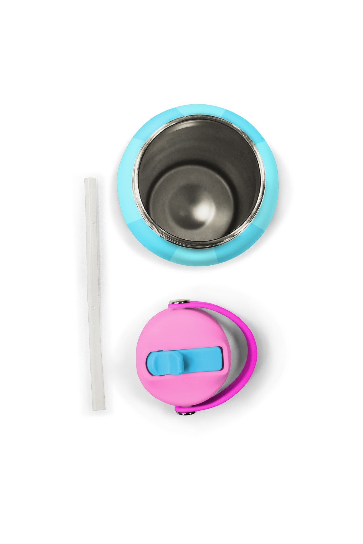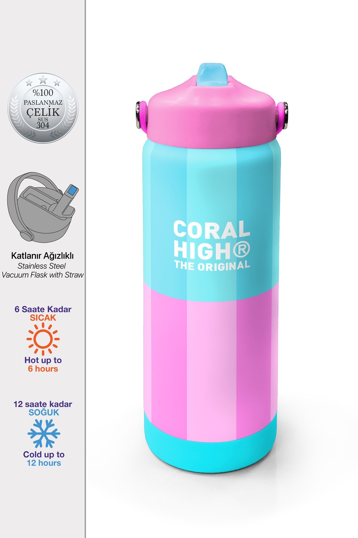 Coral High Turkuaz Pembe Çizgili Desenli Katlanır Ağızlıklı Çelik Termos 650 ml 38381