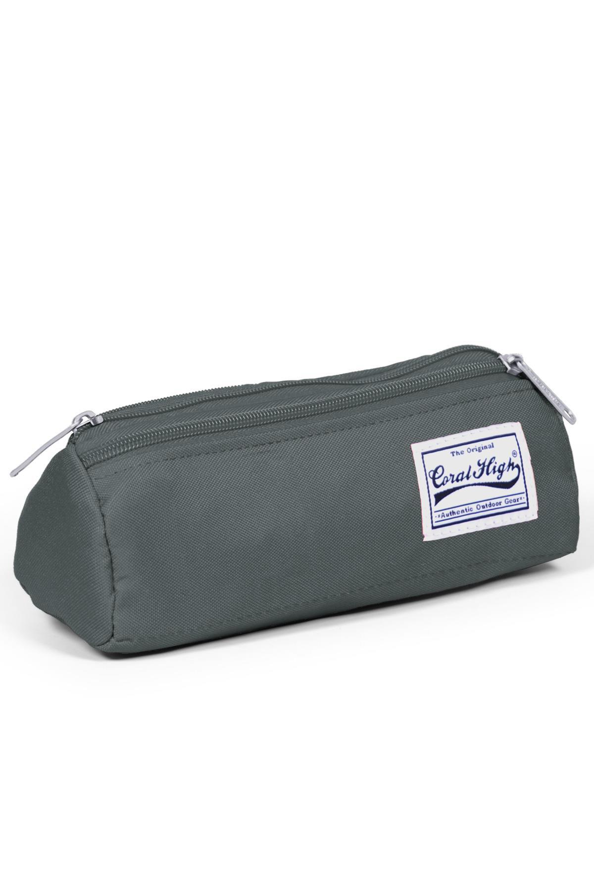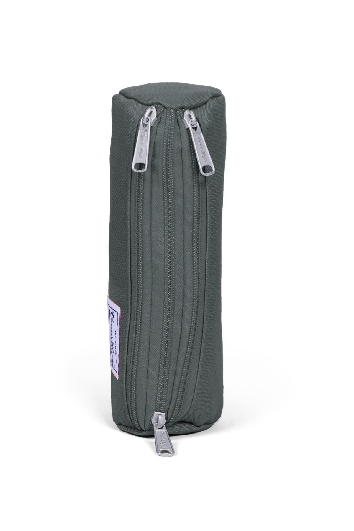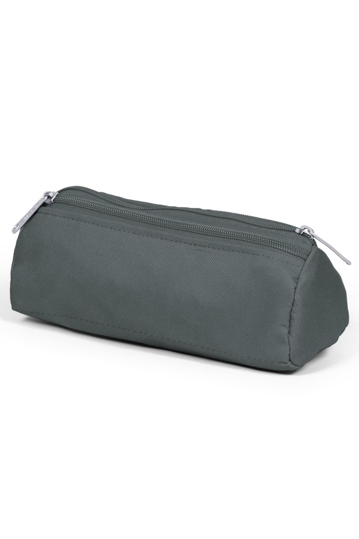 Üç bölmeli, fermuarlı kalem çantası.