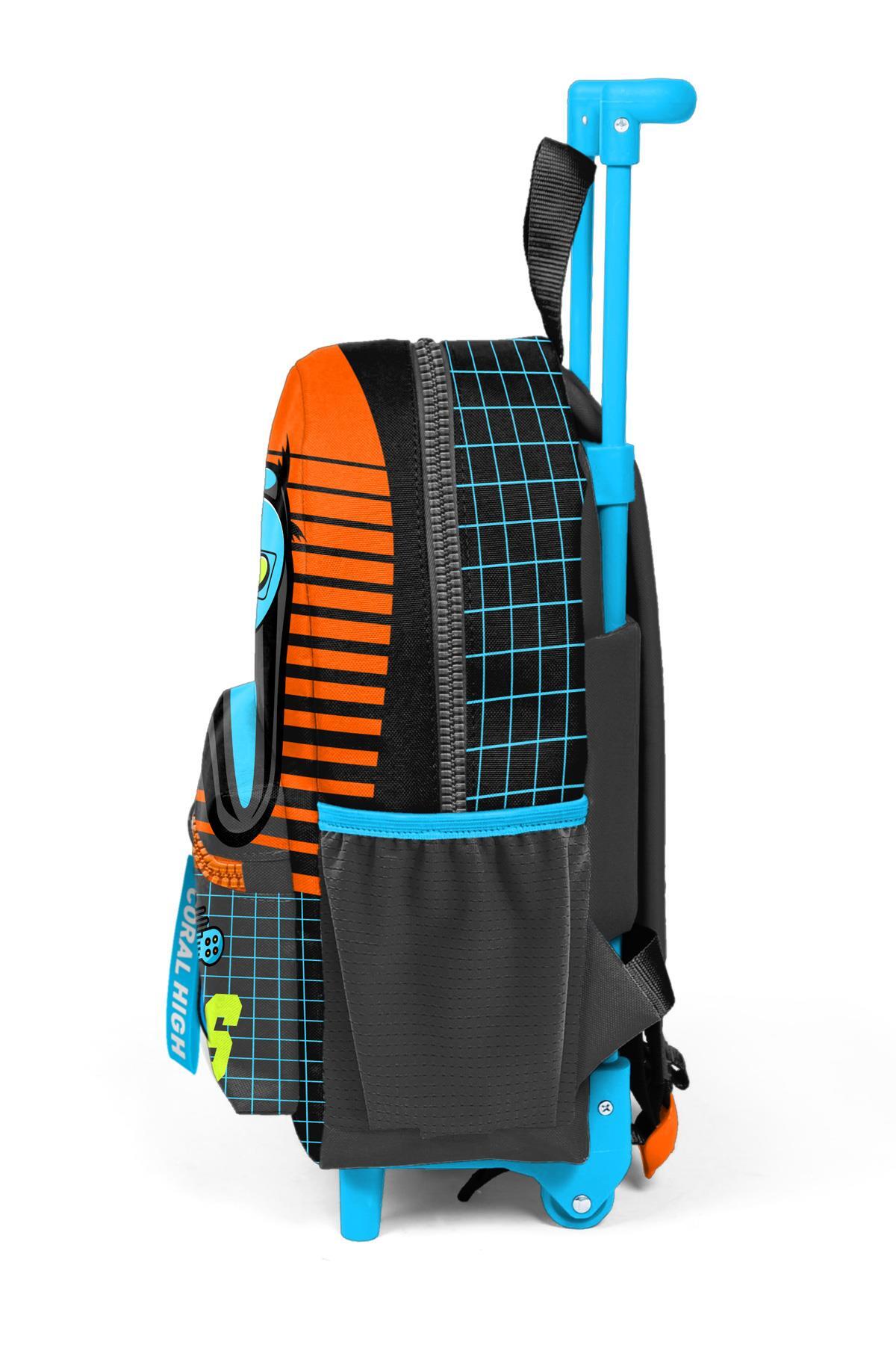 Minik Yuva Çekçekli Sırt Çantası Gri Turuncu Gamer Desenli İki Bölmeli 24046