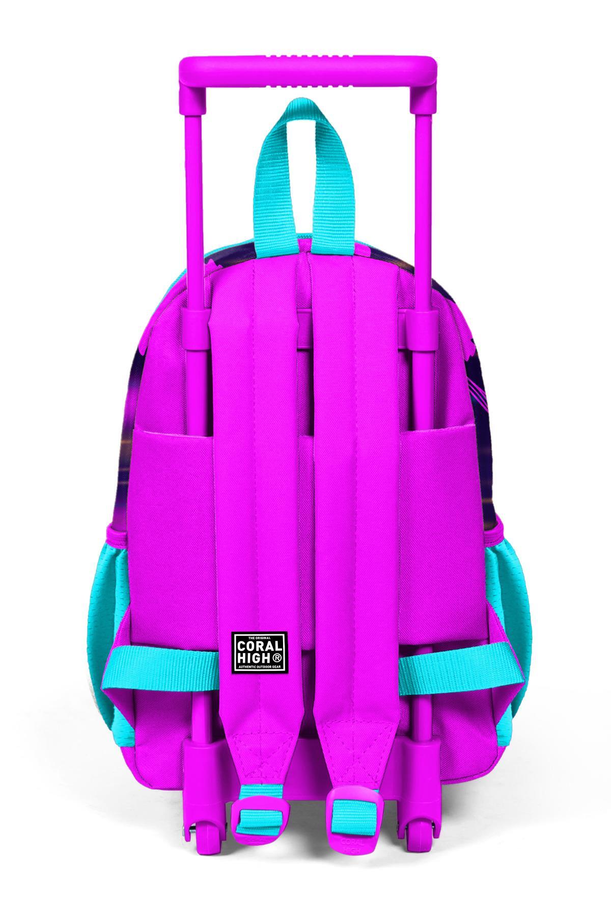 Minik Yuva Çekçekli Sırt Çantası Mor Pembe Anime Kedi Desenli İki Bölmeli 24053