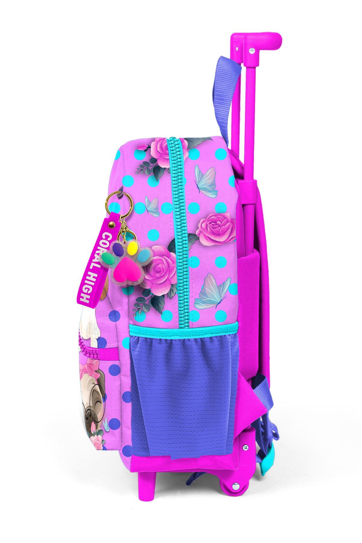 Minik Yuva Çekçekli Sırt Çantası Pembe Köpek Desenli İki Bölmeli 24050
