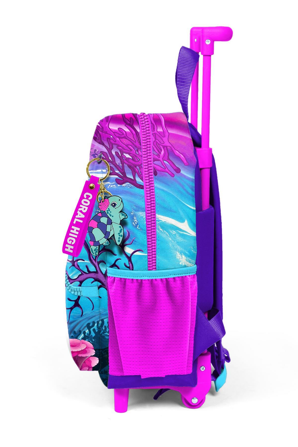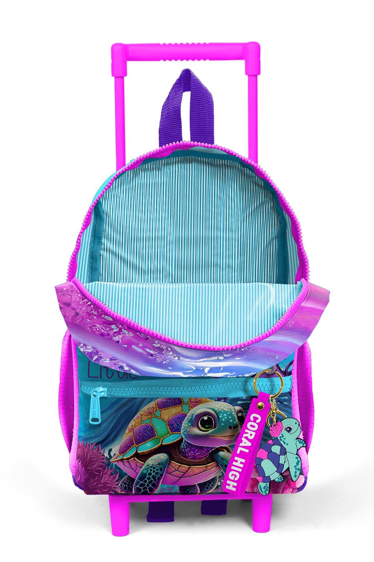 Minik Yuva Çekçekli Sırt Çantası Pembe Mor Kaplumbağa Desenli İki Bölmeli 24056