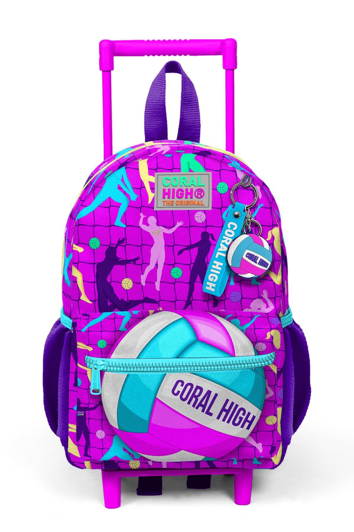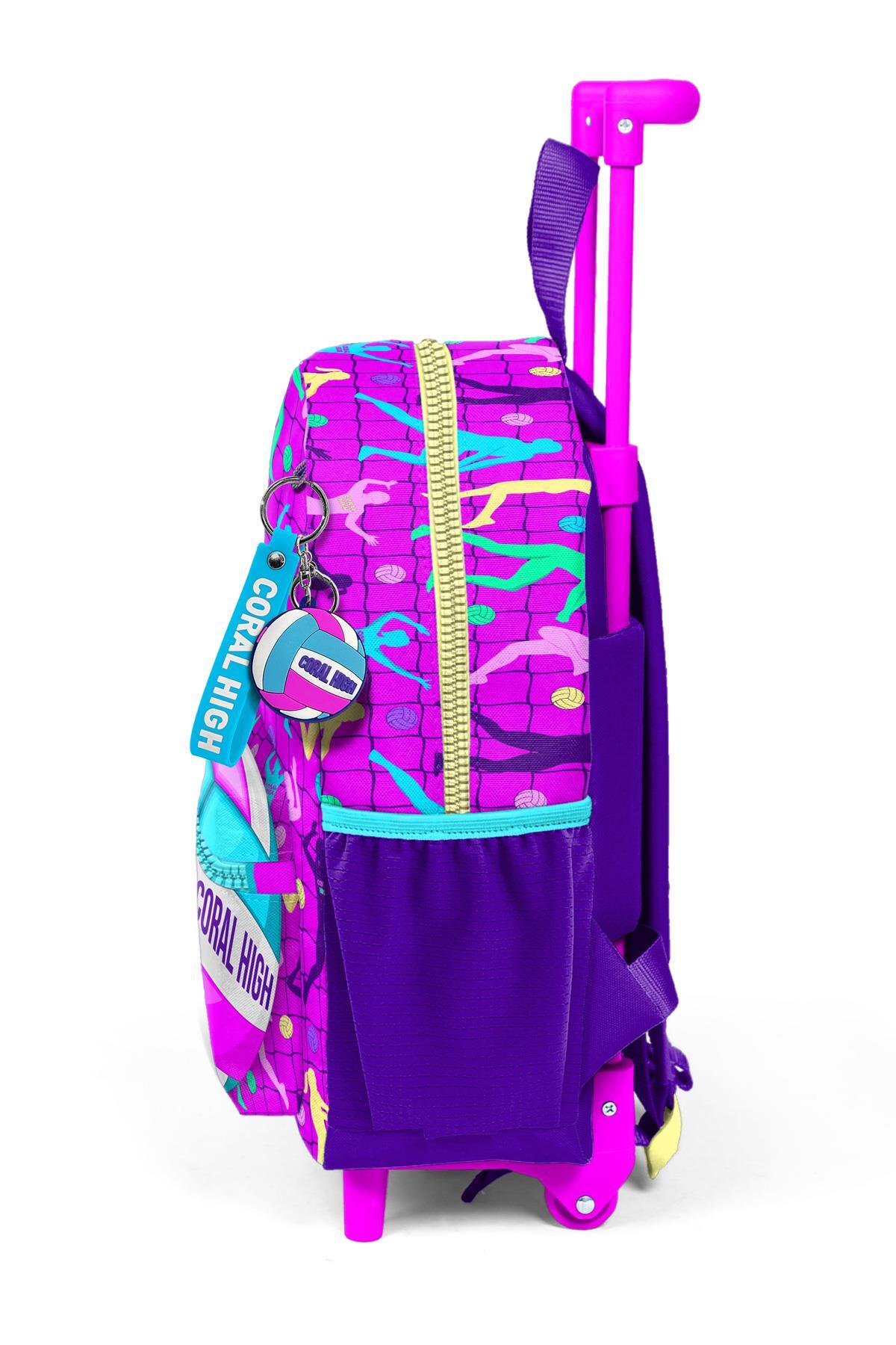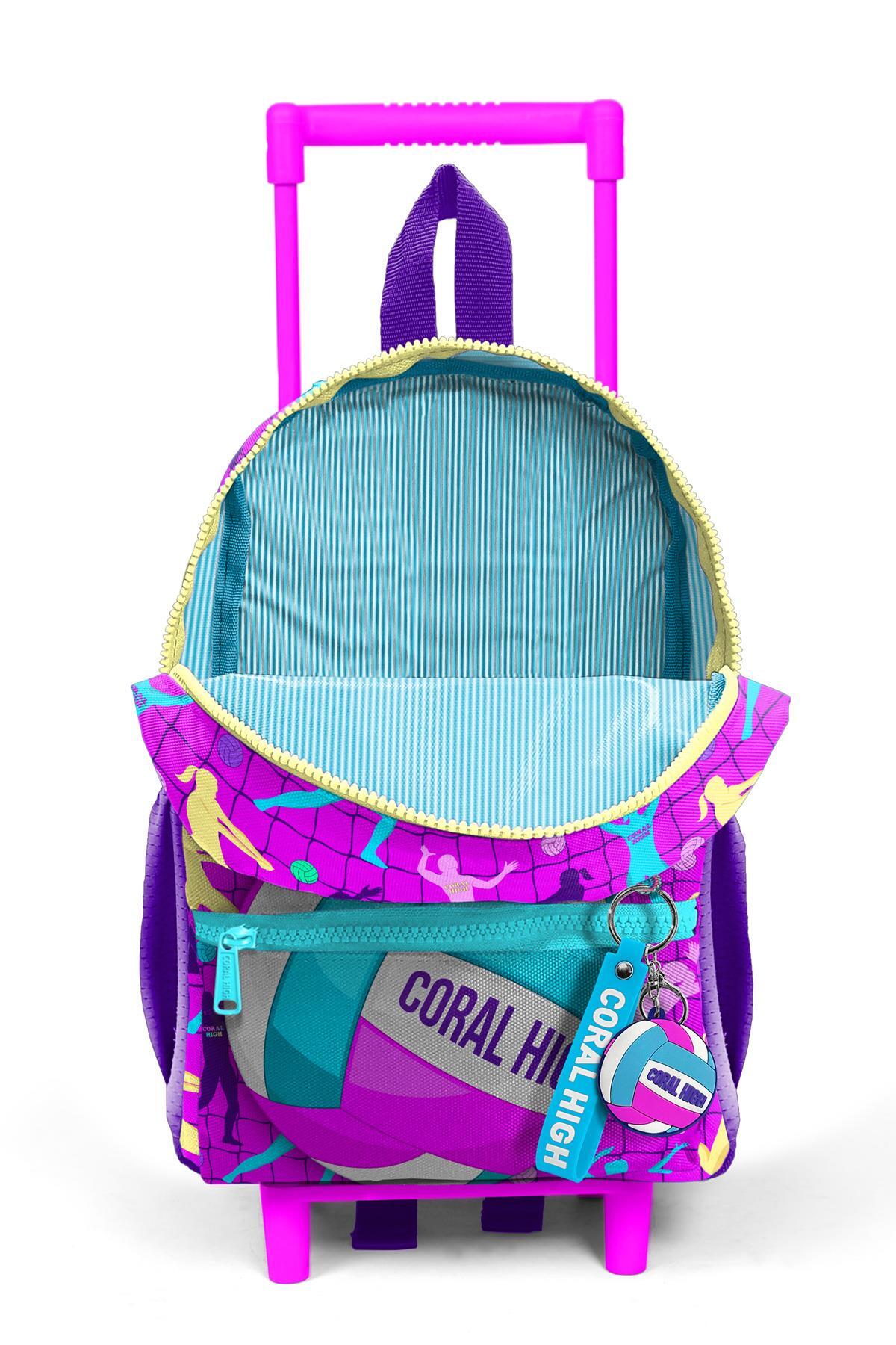 Minik Yuva Çekçekli Sırt Çantası Pembe Mor Voleybol Desenli İki Bölmeli 24061