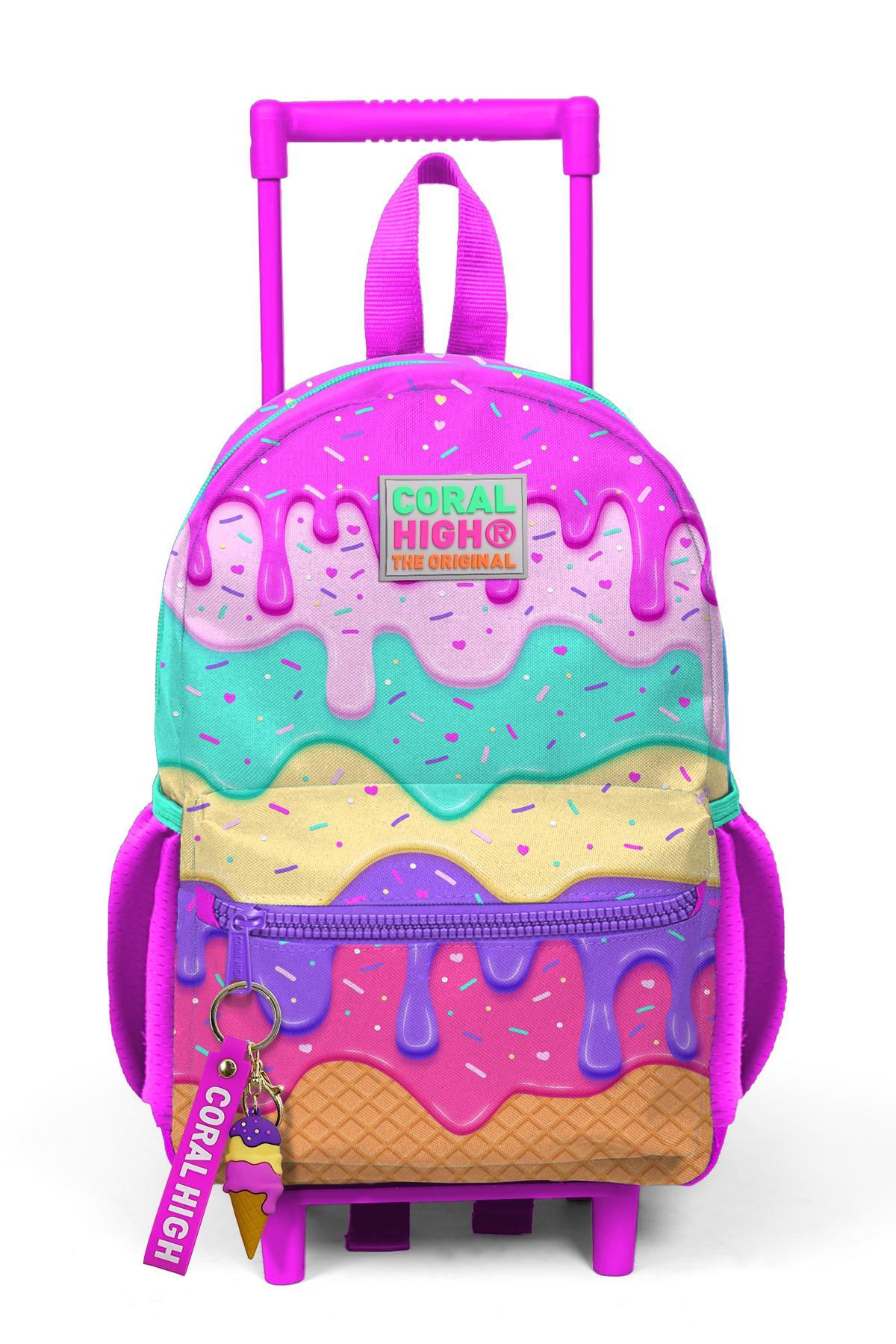 Minik Yuva Çekçekli Sırt Çantası Pembe Rengarenk Dondurma Desenli İki Bölmeli 24031