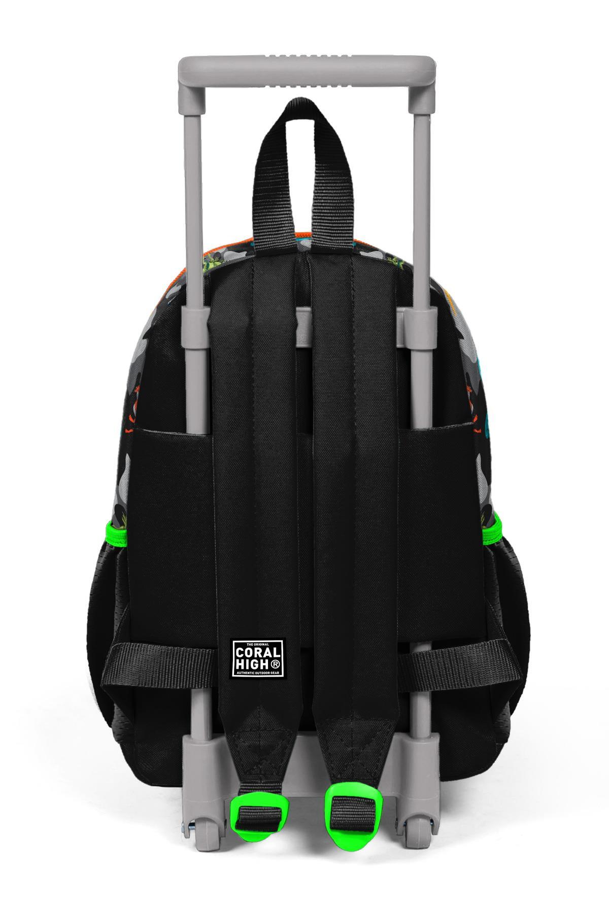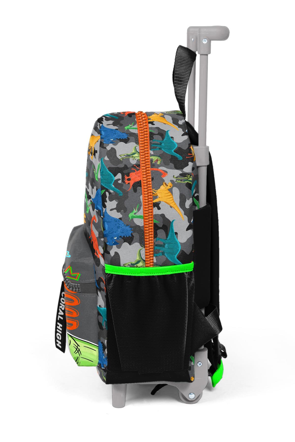 Minik Yuva Çekçekli Sırt Çantası Siyah Gri Dinozor Desenli İki Bölmeli 24044