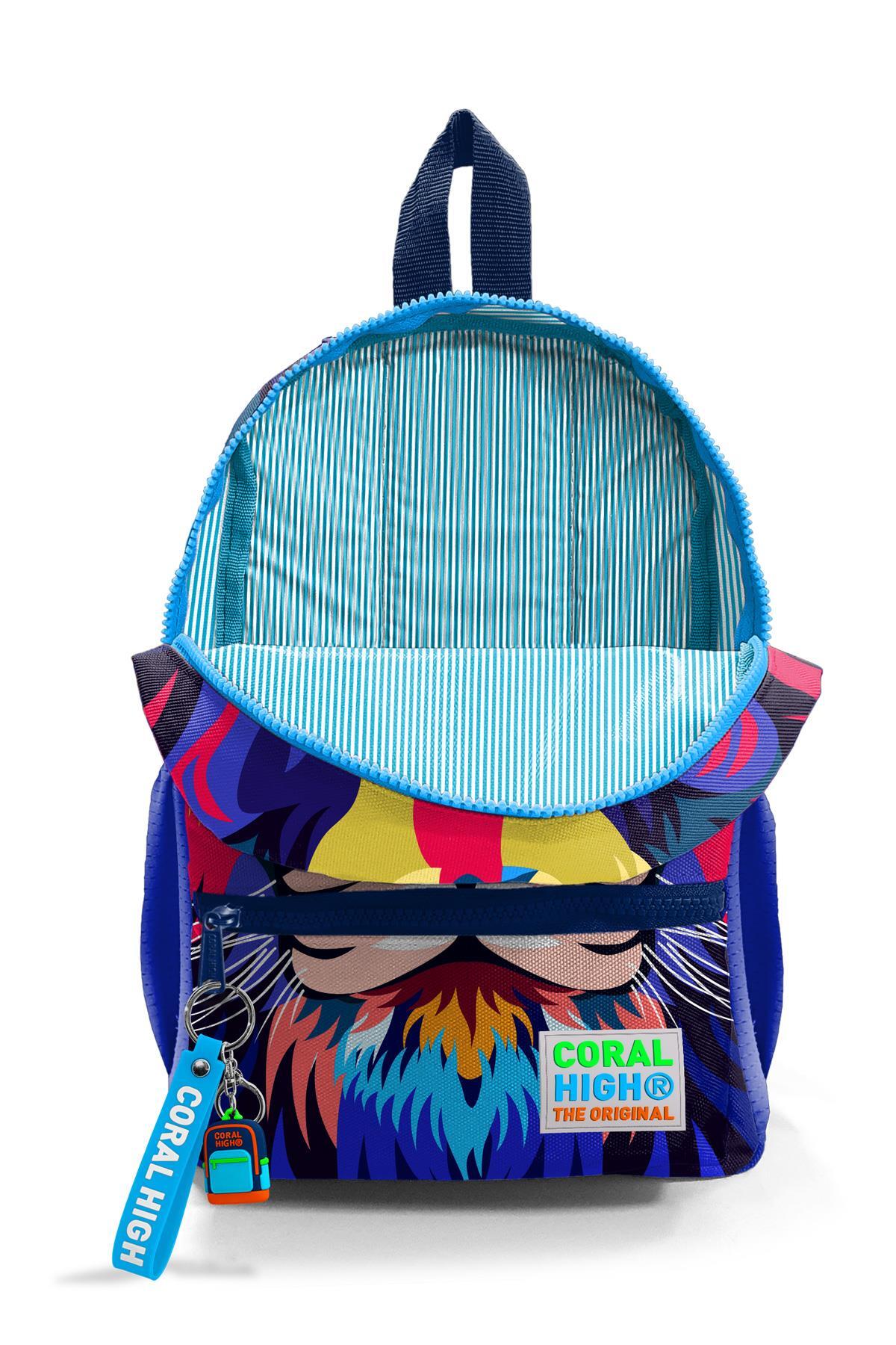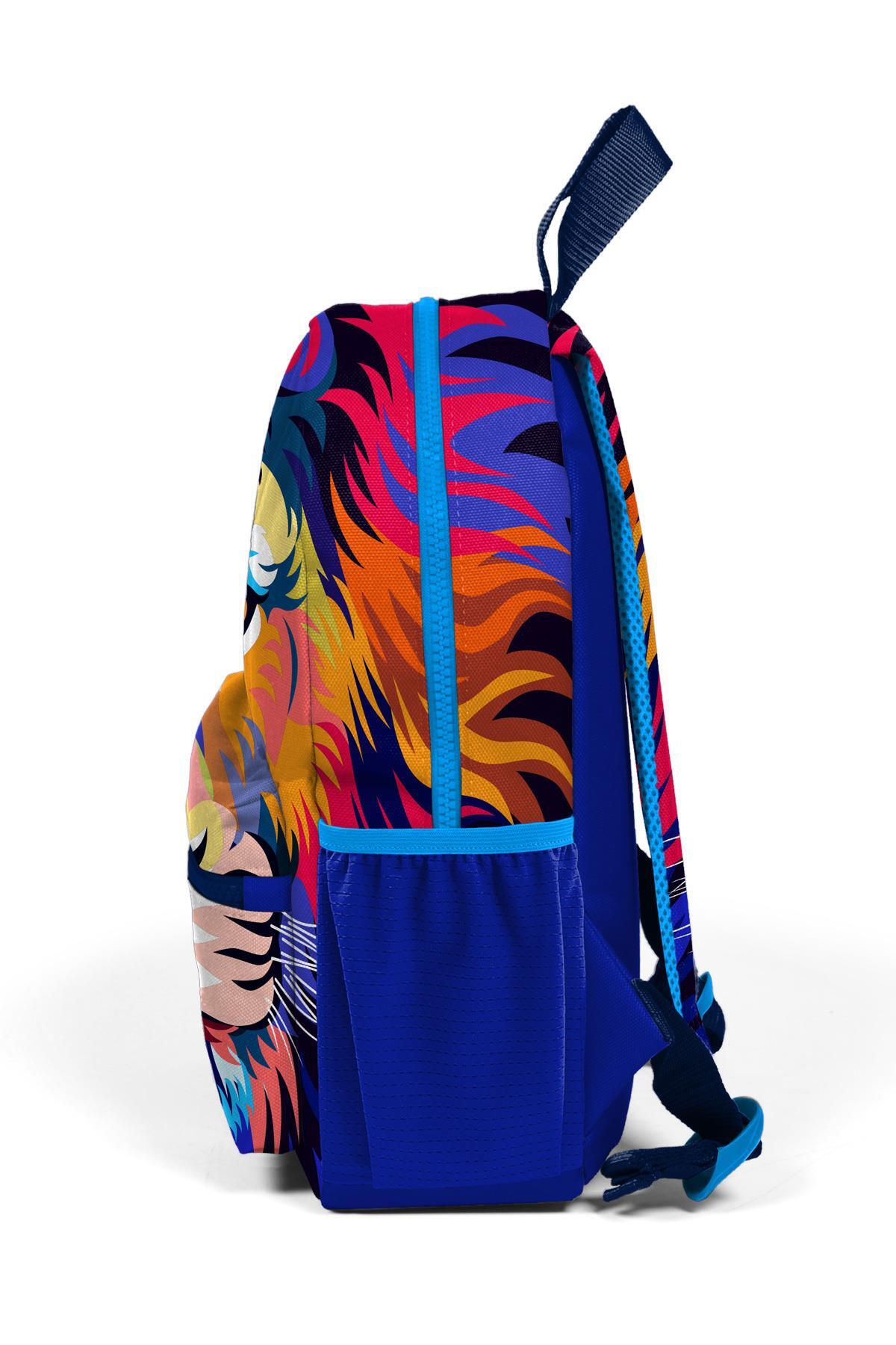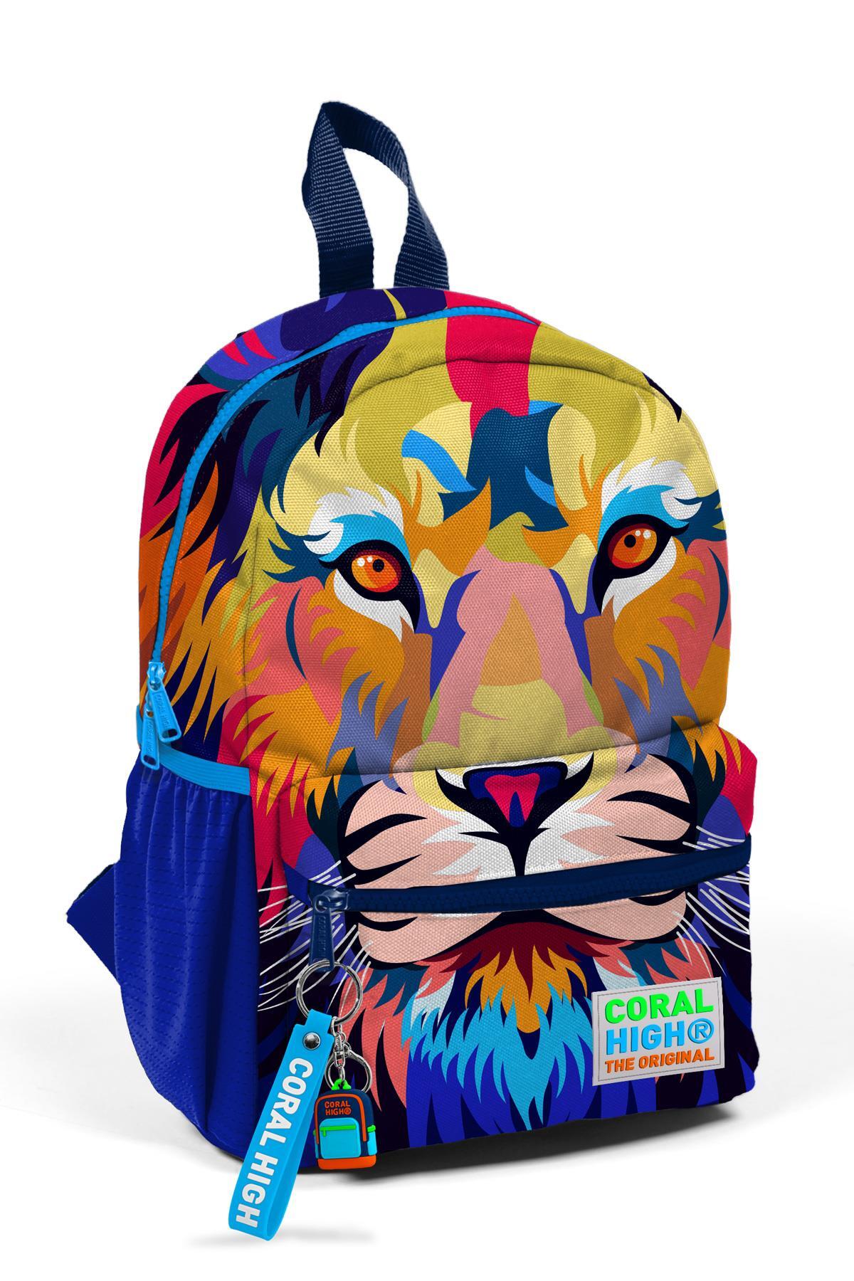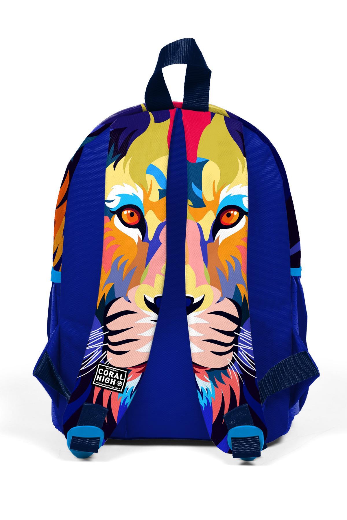 Minik Yuva Sırt Çantası Lacivert Saks Aslan Desenli İki Bölmeli 23541