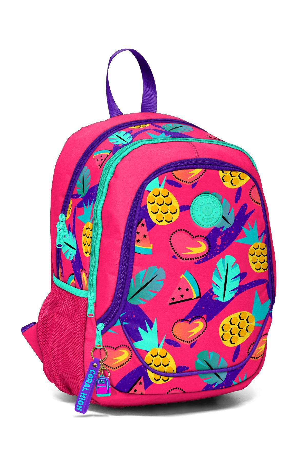 Coral High Kids Neon Mercan Tropikal Desenli Okul Çantası 14367