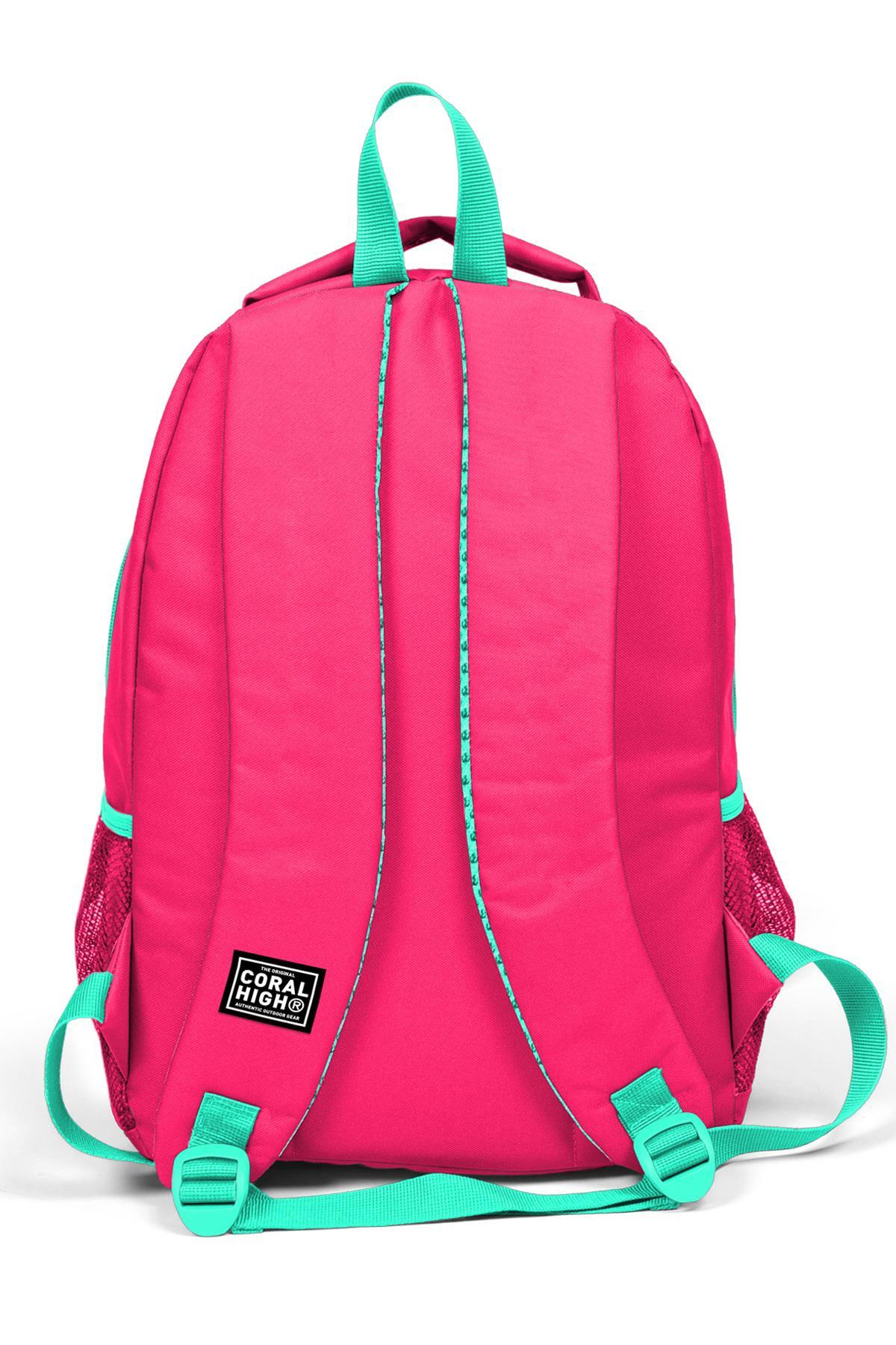 Çantanın yan kısımlarında 2 adet esnek file malzemeden suluk ve aksesuar cebi bulunmaktadır.